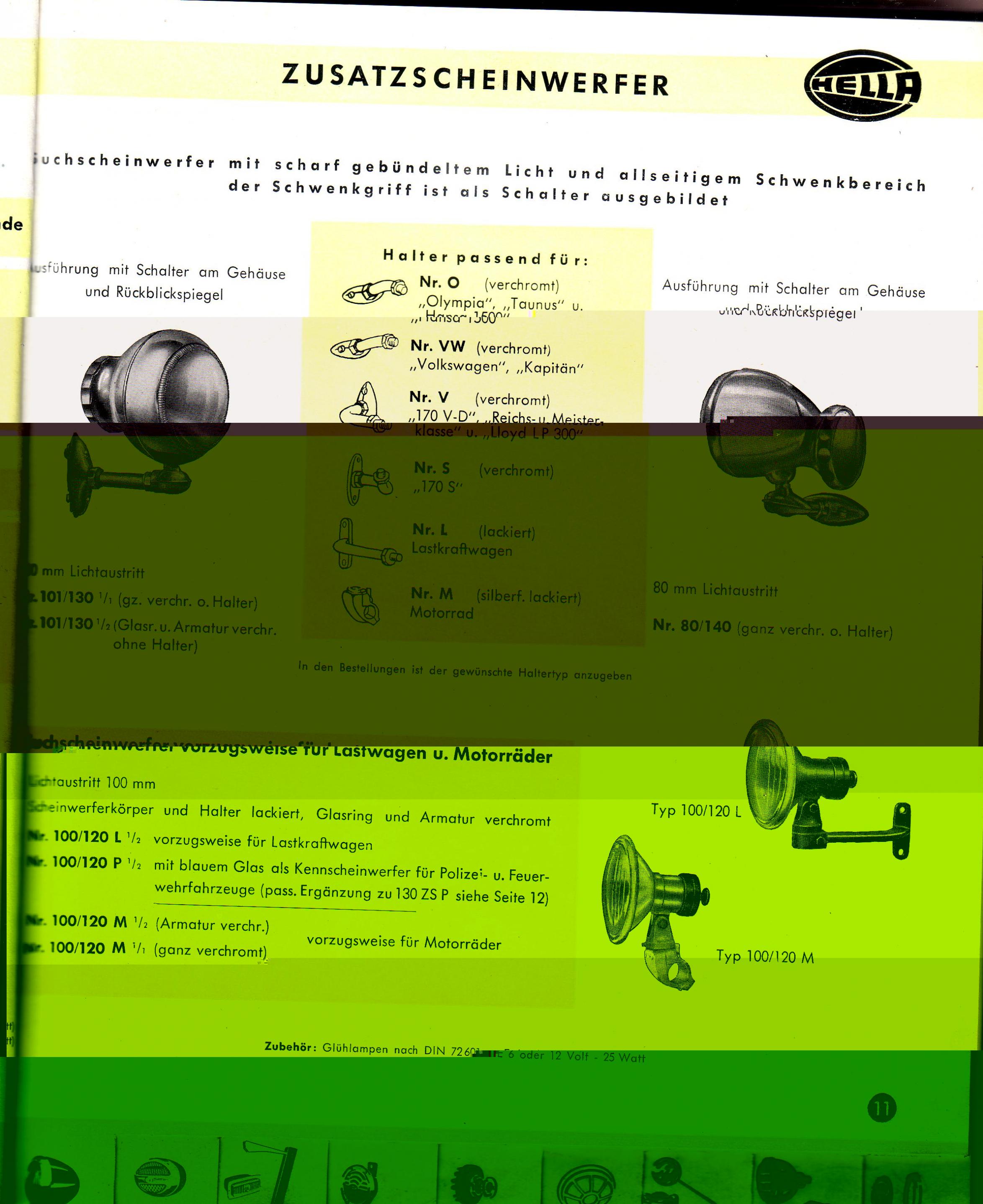Hella früher 50ger Jahre, siehe Katalog oben links, offenbar hatte der noch einen zusätzlichen Spiegel eingeklebt. Leider ist der Scan vom Katalog beschädigt... |