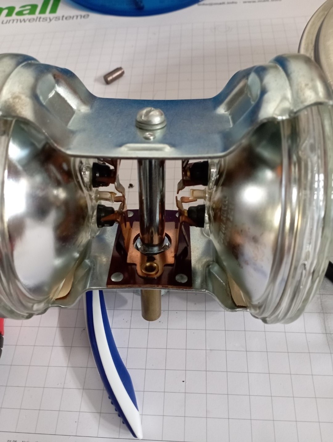 Neben den üblichen Polieraufgaben, korrekten Leuchtmitteln und der Dichtung muss ich mir die Welle vom Motor anschauen. Die eiert etwas.