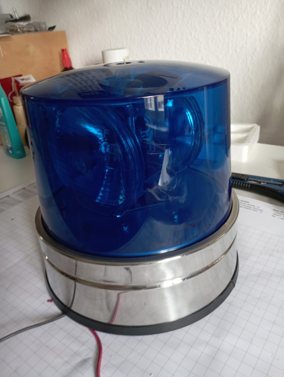 Ich hatte noch eine fertige Rundumleuchte, die nur auf die passende Haube gewartet hat. Daher war der jetzige Aufwand recht gering.