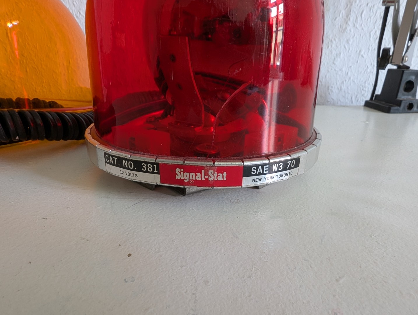 Lampen: GE 1195 Model: 381 Volt: 12V Produktionsjahr: ab 1970, mein Modell vermutlich ein spätes Exemplar Ich bin in der Sammlung über diese teardrop gestolpert und musste feststellen, dass ich sie noch nicht vorgestellt habe. Im Grunde keine Besonderheit, ist die 381 baugleich zur SVP 1166 und sämtlichen anderen Modellen der 1166 Reihe. Leider ist die rote Haube eingerissen und dazu noch an der Front. Und die amber Haube ist scheinbar ein Produktionsfehler, denn sie passt nicht sauber auf das Unterteil. Sie ist auch ca. 2mm kürzer als die rote Haube. Beide tragen aber die Markierungen "Signal Stat 367". |