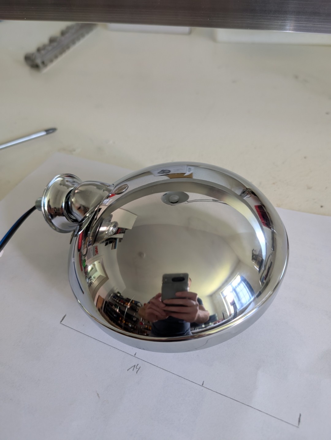 Der Reflektor ist mit der Streuscheibe verbunden und im Grunde wie eine sealed beam mit wechselbarer H3 Birne. Bei Kleinanzeigen hatte ich zwei weitere Lampen gefunden, also habe ich nun 3 Stück. Die vierte kaufe ich dann wieder im Motorradfachgeschäft. Also das alles entfernt und eine 4414R verbaut. Das minus direkt ans Gehäuse angebunden und ein Pluskabel durch die Montageschraube. Hier sind die beiden roten für die Front fertig, für die rear flasher suche ich noch geeignete amber PAR36. |