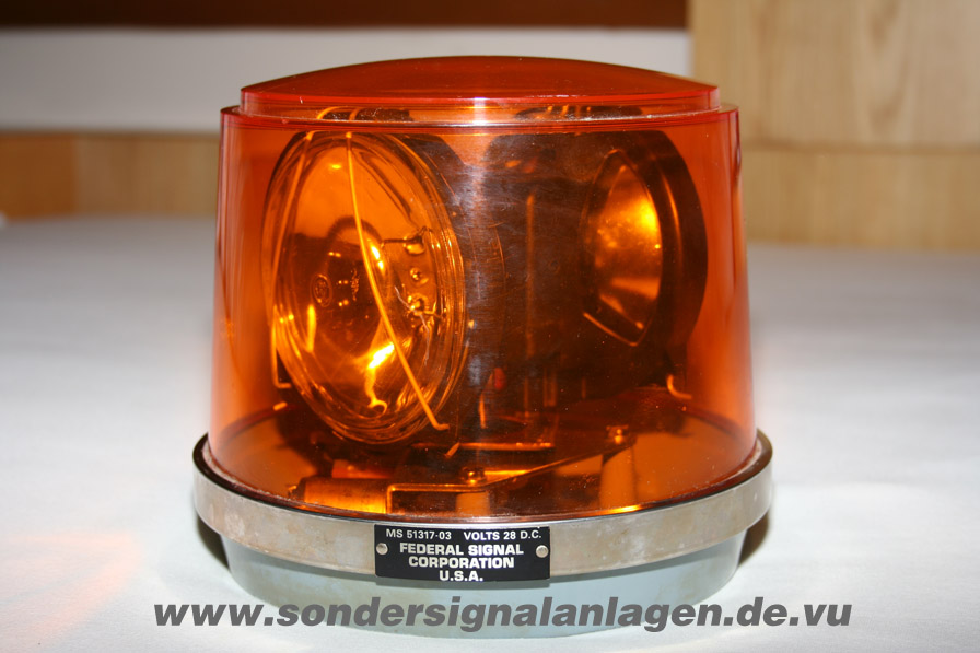 Dies ist die Federal Signal Beacon Model MS 51317-03. Eine Rundumleuchte mit 2 sogenannten "sealed beam" Leuchtkörpern. Diese ergeben den bekannten "Leuchtturmeffekt", da sich die Leuchte zwar langsam dreht aber dafür pro Umdrehung zwei mal einen intensiven Lichtkegel wirft.