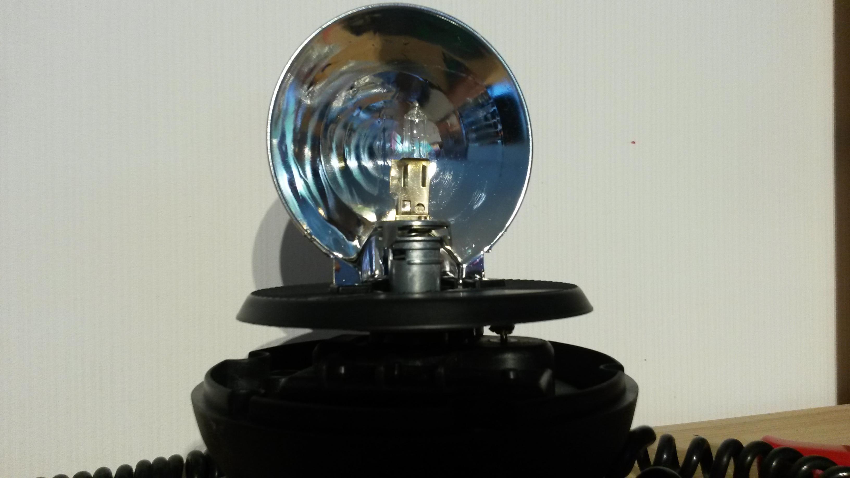Es handelt sich dabei um eine Dual-Voltage-Rundumkennleuchte mit Drehspiegel-Technik. Die Agrirot ist für Magnet- und Aufsteckmontage ausgelegt. Die Stromversorgung der Agrirot erfolgt über das, von allen Sirena-Leuchten bekannte, Spiralkabel mit Universal-Stecker. Der Stecker bei dieser Leuchte ist nicht der originale, er wurde vermutlich vom Vorbesitzer der Leuchte ausgewechselt. Die Agrirot wird mittels drei Ringmagneten auf Stahldächern und anderen geeigneten Unterlagen fest gehalten. Die Magneten sind beweglich gelagert, so dass Unebenheiten ausgeglichen werden können. Weiter findet sich auf der Unterseite der Leuchte eine Loch mit einem männlichen DIN-Stecker. So kann die Agrirot auch auf einem Aufsteckrohr verwendet werden. Der Drehspiegel ist der Standard-Sirena-Stufenspiegel. Er dreht sich um eine H1-Glühlampe. Auf der Grundplatte, auf der der Drehspiegel befestigt ist, findet sich ein schwarzer Aufkleber, auf dem sich in grüner Schrift die Typenbezeichnung ("AGRIROT-BV"), die Versorgungsspannung ("BV. 12-24 V") und Angaben zum Leuchtmittel ("H1 55W - 70W") nachlesen lassen. Ebenso der Hinweis "Made in EEC". Die Grundplatte schließt nicht - wie sonst bei Sirena üblich - mit dem Leuchtengehäuse bündig ab, sondern steht etwa 2,5 cm über. Das liegt daran, dass die DIN-Steckdose (s.o.) Platz braucht und sich weitere Bauteile in dem Gehäuse befinden. Somit wird für die Agrirot eine größere Lichthaube benötigt, die die Höhe der Leuchte (gemessen von der Unterseite der Magneten bis zur Oberseite der Lichthaube) auf knapp 24 cm erhöht. Zwischen der Lichthaube und dem Leuchtengehäuse befindet sich eine schwarze Gummidichtung. Auf der Lichthaube finden sich Hinweise auf Leuchtmittel und Betriebsspannung ("H1 12V - 24V") sowie die Zulassungsnummern für Deutschland ("BLAU ~~~K8665" "GELB ~~~K8666"), Frankreich ("BLEU T.P.F.S.A. 84" "ORANGE T.P.F.S.A. 83") und Italien ("BLU AGR-1 DGM43045DPV" "GIALLO AGR-2 DGM43044DM0"). Die Lichthaube ist klar, jedoch im unteren Bereich (nicht ausgeleuchtet) vertikal geriffelt. So wird der Spalt zwischen der Grundplatte für den Drehspiegel und der Gehäuseoberseite kaschiert. Nach der Demontage der Magneten ist die Aufnahme für das Aufsteckrohrfrei zugänglich. Nachdem die Bodenplatte der Agrirot entfernt wurde, erkennt man neben dem Motor einen Spannungswandler mit der Aufschrift "12 - 24 V". Die Agrirot ist eine vielseitig verwendbare Kennleuchte, das bezieht sich sowohl auf die Möglichkeiten der Befestigung als auch auf die Betriebsspannung. Die Warnwirkung ist gut und die Technik gewohnt robust. Im Vergleich zu der Mobylux/Rotpol, die das gleiche Gehäuse verwenden, wirkt die Agrirot riesig. Dies wird dadurch verstärkt, dass die Magneten der Agrirot an den Schraubendurchführungen des Gehäuses befestigt sind, die der Mobylux/Rotpol an der Bodenplatte angeschraubt werden. Die höhere Lichthaube tut ihr Übriges. |