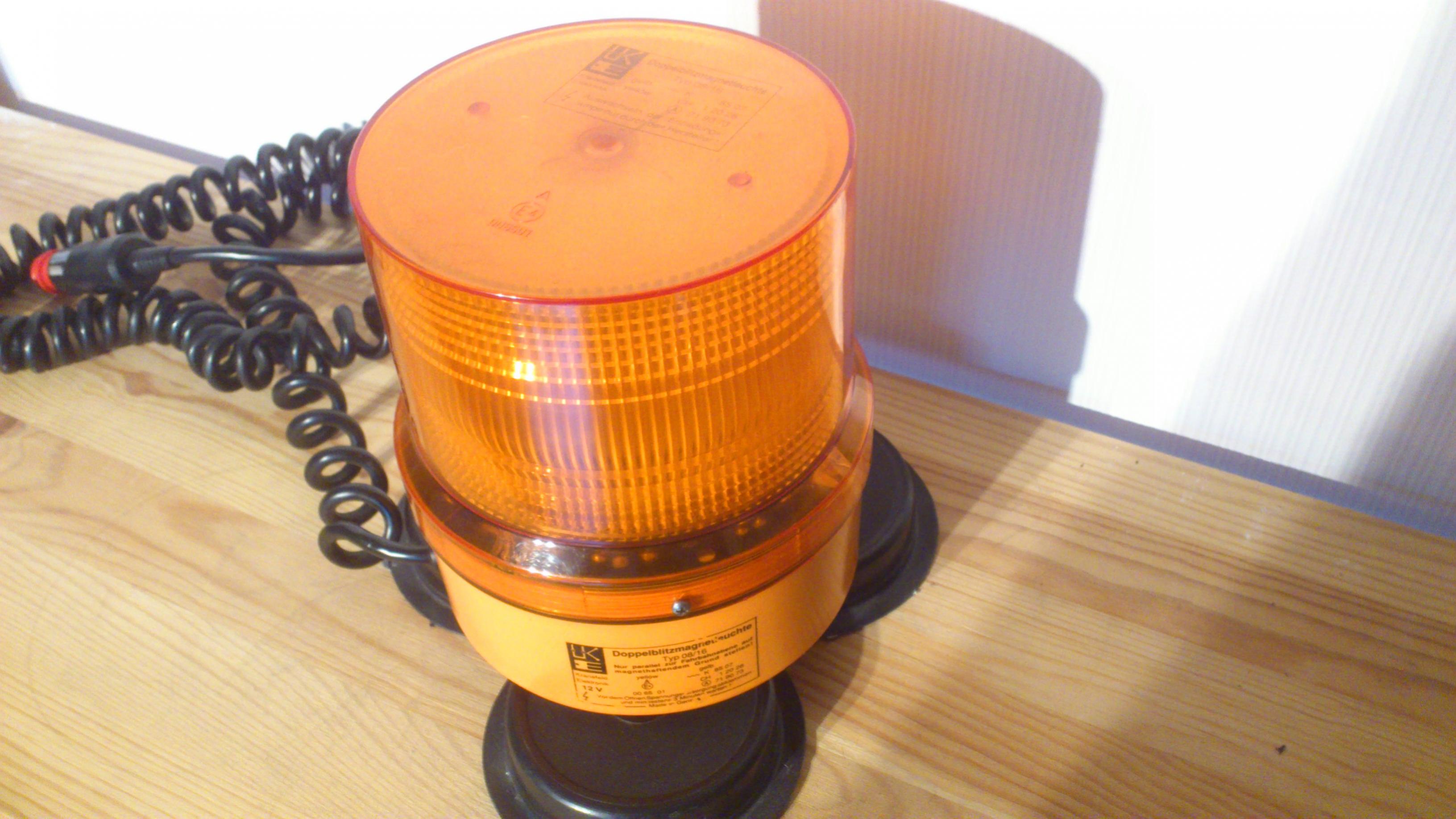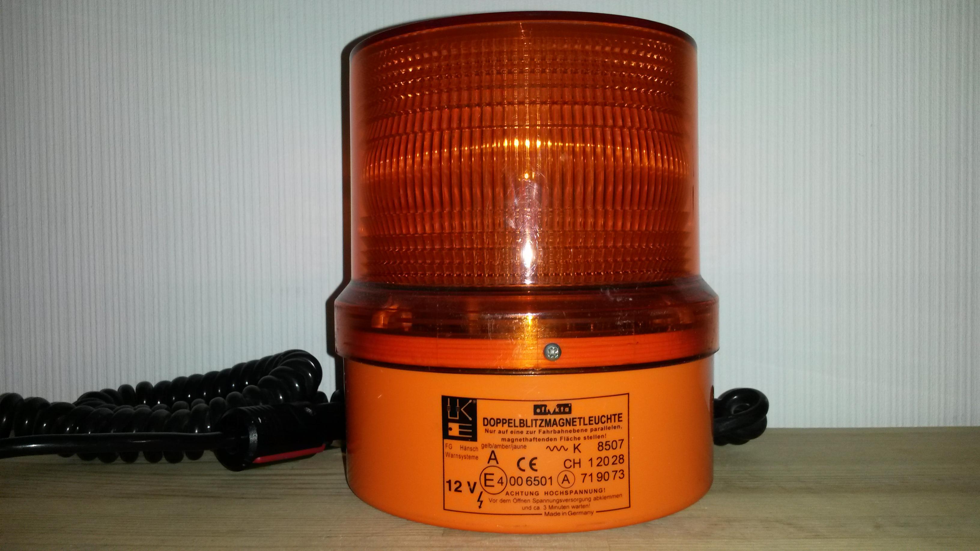 Neue Bilder werden nach und nach hochgeladen. *** Das ist meine Hänsch effekta. Es handelt sich dabei um eine Doppelblitzleuchte mit 12 Volt Betriebsspannung. Die Stromversorgung erfolgt über ein Spiralkabel mit Universal-Stecker. Das Typenschild der effekta ist auf das Leuchtengehäuse aufgedruckt. Neben der Zulassung als reguläre Kennleuchte ("A E4 (im Kreis) 00 6501") ist die Leuchte mit der "~~~K 8507" als zusätzliche Warnleuchte bei stehendem Fahrzeug mit Warnblinklicht zugelassen. Die schwarze Gummidichtung zwischen Lichthaube und Leuchtengehäuse dichtet das Innenleben der effekta zuverlässig ab. Bild Das Typenschild wiederholt sich auf der Lichthaube. Bild Auf der Unterseite des Leuchtengehäuses finden sich drei weiße Gummis. Sie sollen die Leuchte am Verrutschen hindern. Bild Im Inneren des Leuchtengehäuses befindet sich ein Ringmagnet. Bild Im Inneren der Lichthaube ist eine Platine mit der Blitzröhre und den Bauteilen zur Erzeugung des Doppelblitz-Signals. Bild Die Lichthabe ist innen mit einer weißen Fresnellinse ausgestattet. Außen ist die orange Lichthaube glatt. Sie wird mit einer Schraube zusätzlich gegen ungewolltes Verdrehen/Lösen vom Gehäuse gesichert. Bild Die Blitzröhre ist auf der Platine angelötet und darf nur vom Hersteller (Hänsch) ausgewechselt werden. Bild Auf der Oberseite der Platine ist die Zahl 1002 aufgedruckt. Ihre Bedeutung ist mir unbekannt. Bild Die Hänsch effekta ist eine vollwerige Doppelblitzkennleuchte (§ 52 StVZO), die zusätzlich als zusätzliche Warnleuchte für Privatanwender nach § 53 a Abs. 3 StVZO zugelassen ist. Das Blitzsignal ist sehr auffällig und die Benutzung der Leuchte stellt ein deutliches Sicherheitsplus dar. Der innen liegende Ringmagnet verhindert, dass die Leuchte im Fahrbetrieb sicher auf dem Fahrzeugdach gehalten wird. |