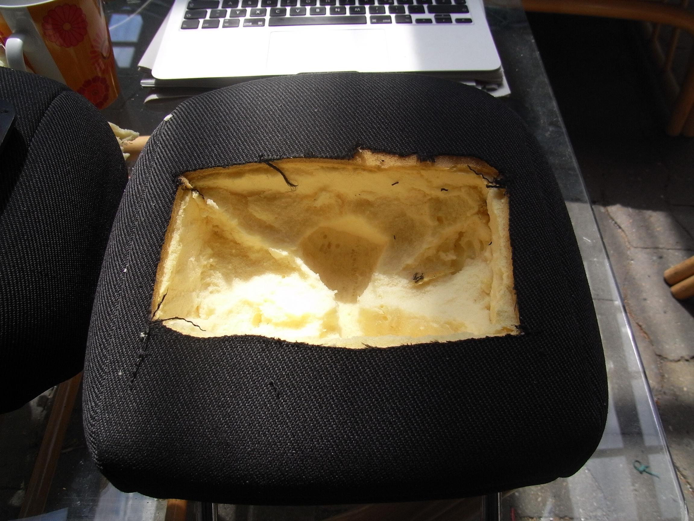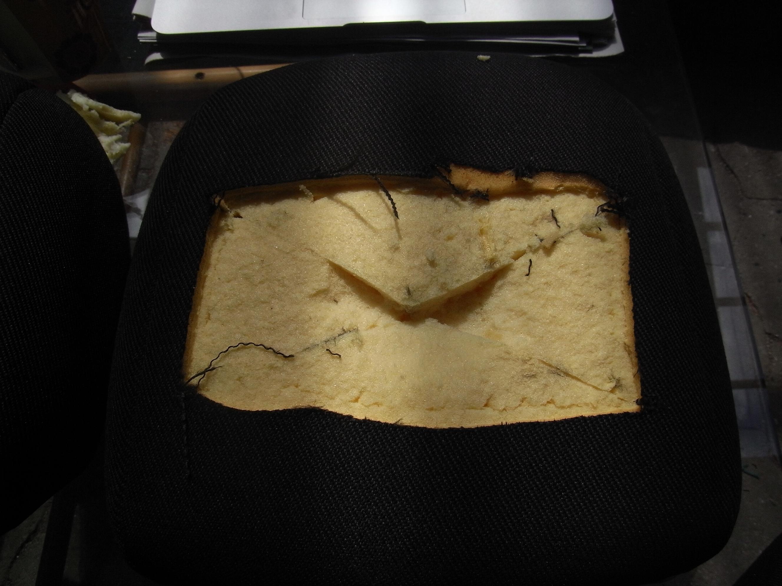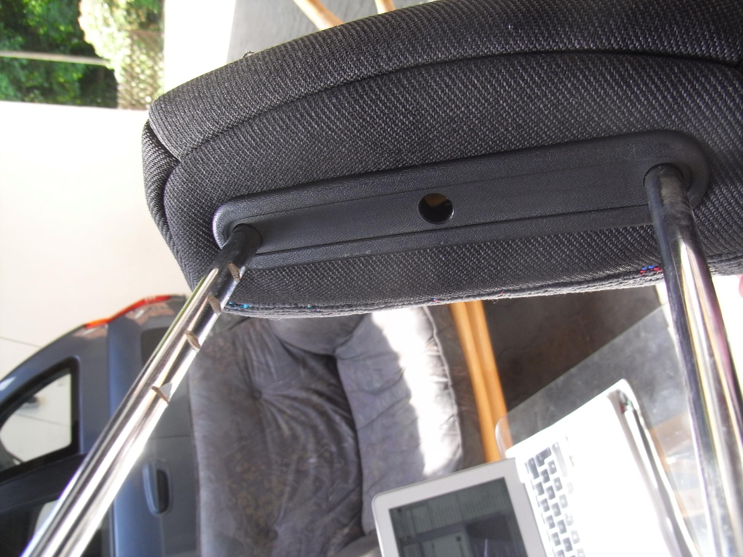 Wie auf zwei Bildern zu sehen ist, war unten in den Kopfstützen bereits ein Bloch, sodass ich dort das kabel jeweils einfach nur durchziehen musste.