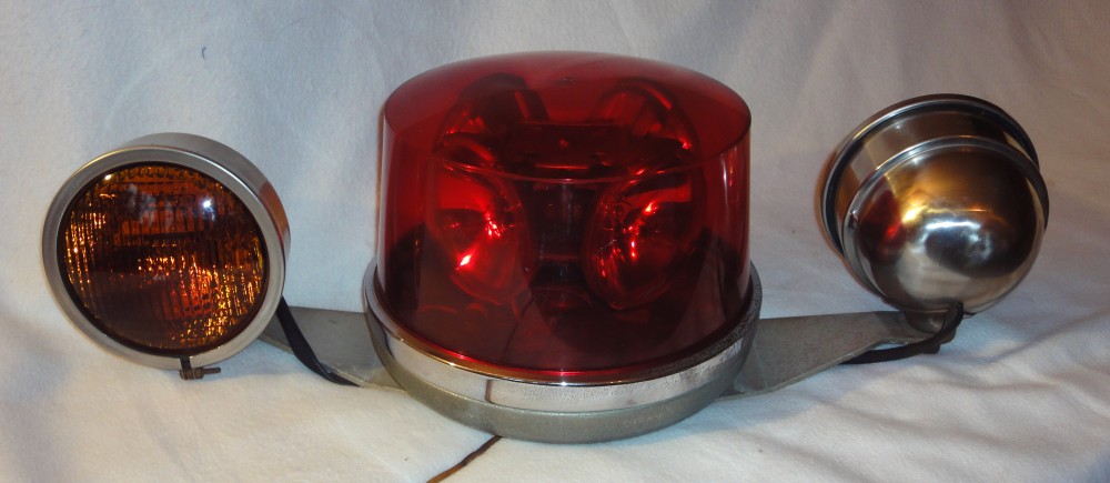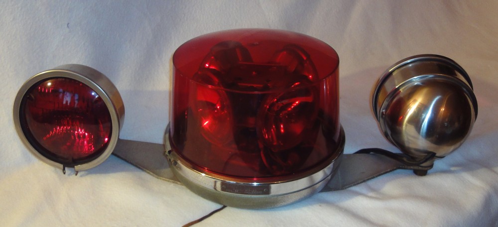 ):Dietz 211 Beacon, California Spec. - Hergestellt am 30.9.1968 - 4 klare PAR 36 Leuchten im Rotor - 1 rote PAR 46 steady burn Leuchte in PER- LUX 200 T Gehäuse - 1 gelbe PAR 46 rear flasher Leuchte in PER- LUX 200 T Gehäuse - der eigentliche Flasher ist im Sockel der Leuchte verbaut - als Besonderheit sind bei dieser Leuchte der Motor und Antrieb in einem geschlossenen Gehäuse verbaut |