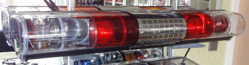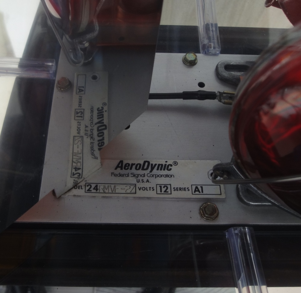 ![]() Federal Signal Aerodynic 24 RMVF-2Z "NYPD Aerotwinsonic" Zustand ist im wesentlichen als neu zu bezeichnen, nur in der hinteren Hälfte des Speaker cover ist das Loch für eine Antenne. Hier muss ich noch herausfinden ob das in New York auch so war. Ausgestattet mit 2x2 PAR 36 Drehern in weiß und rot und je 2 PAR 36 Flasher in rot nach vorne und orange nach hinten. |