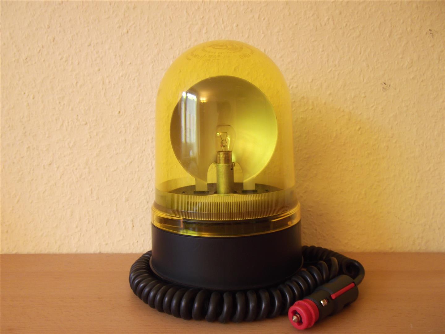 CEM FG 300 Hierbei handelt es sich um eine recht große Magnetkennleuchte. Diese Kennleuchte stammt aus italienischer Produktion. Umgelabelt wurde die Leuchte wohl von der Firma "CEM". Die genaue Modellbezeichnung ist mir leider nicht bekannt, ich vermute, dass die Kennleuchte die Modellbezeichnung FG 300 trägt. Wie man sieht, hat die Leuchte eine zitronengelbe Lichthaube, keine orange Lichthaube. In Italien war es früher üblich, dass Rundumkennleuchten zitronengelbe Lichthauben hatten. Die KL 710 von Hella gab es beispielsweise auch mit zitronengelber Haube für den italienischen Markt. Als Leuchtmittel kommt eine 21 Watt Glühlampe zum Einsatz. Um diese dreht sich ein mattierter Blechspiegel, welcher auf einem Drehteller angebracht ist. Der Drehteller wird von einem Riemen angetrieben. Die Warnwirkung ist aufgrund des Leuchtmittels und des Reflektors nicht wirklich gut. Erwähnenswert ist noch, dass diese Kennleuchte auch bei 12 Volt nur 90 Umdrehungen pro Minute hat. Nicht nur die zitronengelben Lichthauben waren früher in Italien üblich, sondern auch die langsame Drehgeschwindigkeit der Kennleuchten. Auf dem Drehteller ist ein kleines Typenschild angebracht. Die Zulassungsnummern sind in die zitronengelbe Lichthaube eingepresst worden. Da es sich um eine Magnetkennleuchte handelt, erfolgt die Stromzufuhr natürlich über ein Spiralkabel mit Zigarettenanzünderstecker. Auf dem Dach gehalten wird die Leuchte von drei beweglich gelagerten Magneten. Nach dem Lösen der drei Muttern kann die Magnetplatte entfernt werden. |