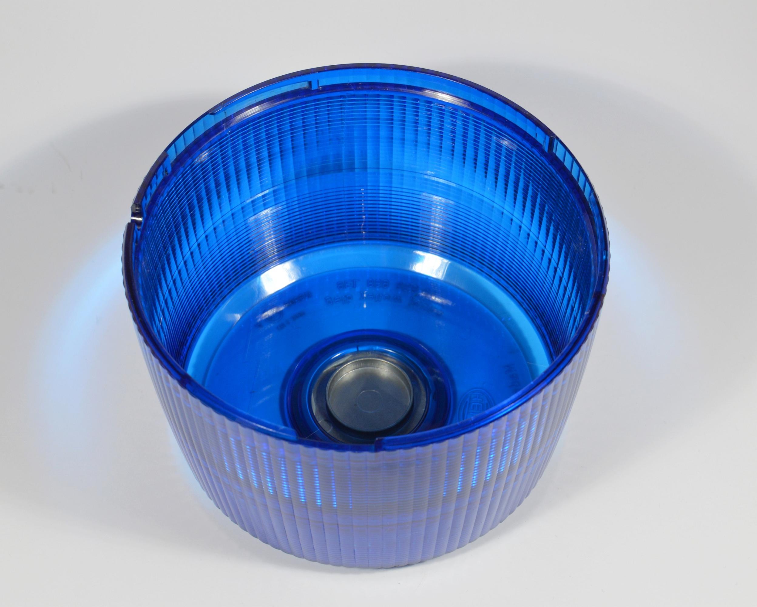 Spannung: 12 V Stromaufnahme: 3,4 A Maße (ØxH): 16,5 x 14 cm Bauform: B1 Diese Leuchte kam aus dem Welser Blaulichtmuseum zu mir (an dieser Stelle nochmal vielen Dank an Patrik ).Zur Namensgebung: sie heißt normalerweise "nur" Hella KLX, jedoch haben sich inoffiziell andere Bezeichnungen etabliert. Zum Beispiel KLX 7017, das leitet sich von der Artikelnummer (2RL 007 017-0) ab. Ebenfalls findet man sie unter dem Begriff KLX II, da sie die zweite Blitzleuchte ist, die Hella gebaut hat. Sieht man sich die Leuchte von außen an, kann man sie von der Größe her mit der Hänsch Comet vergleichen. Die Lichthaube ist mit einer Optik versehen, außen vertikal, innen horizontal geriffelt. Das Typenschild ist am Sockel unter der Haubenschraube aufgedruckt. Im Inneren befindet sich eine auswechselbare Doppelwendelblitzröhre. Die Platine ist auf der Unterseite bestückt, dort sitzt ebenfalls der Speicherkondensator. Die Bodenplatte besteht aus Metall, sie wird für Leistungsbauteile als Kühlkörper verwendet. Im Gegensatz zu ihrem Vorgänger besitzt die Kennleuchte eine Funkentstörung. Da eine Blitzröhre nach oben große Hitze entwickelt, ist oben in die Haube eine Metallplatte eingesetzt. Im Prinzip ist die KLX eine solide, qualitativ hochwertige Kennleuchte in gewohnter Hella-Qualität. Auch die abgegebene Blitzenergie liegt kaum unter der von modernen Blitzleuchten. Doch leider ist die Optik der Haube nicht in der Lage, die komplette Lichthaube auszuleuchten (vgl. Hänsch Comet). Aber alles in allem ein schönes Stück für das Sammlerregal.