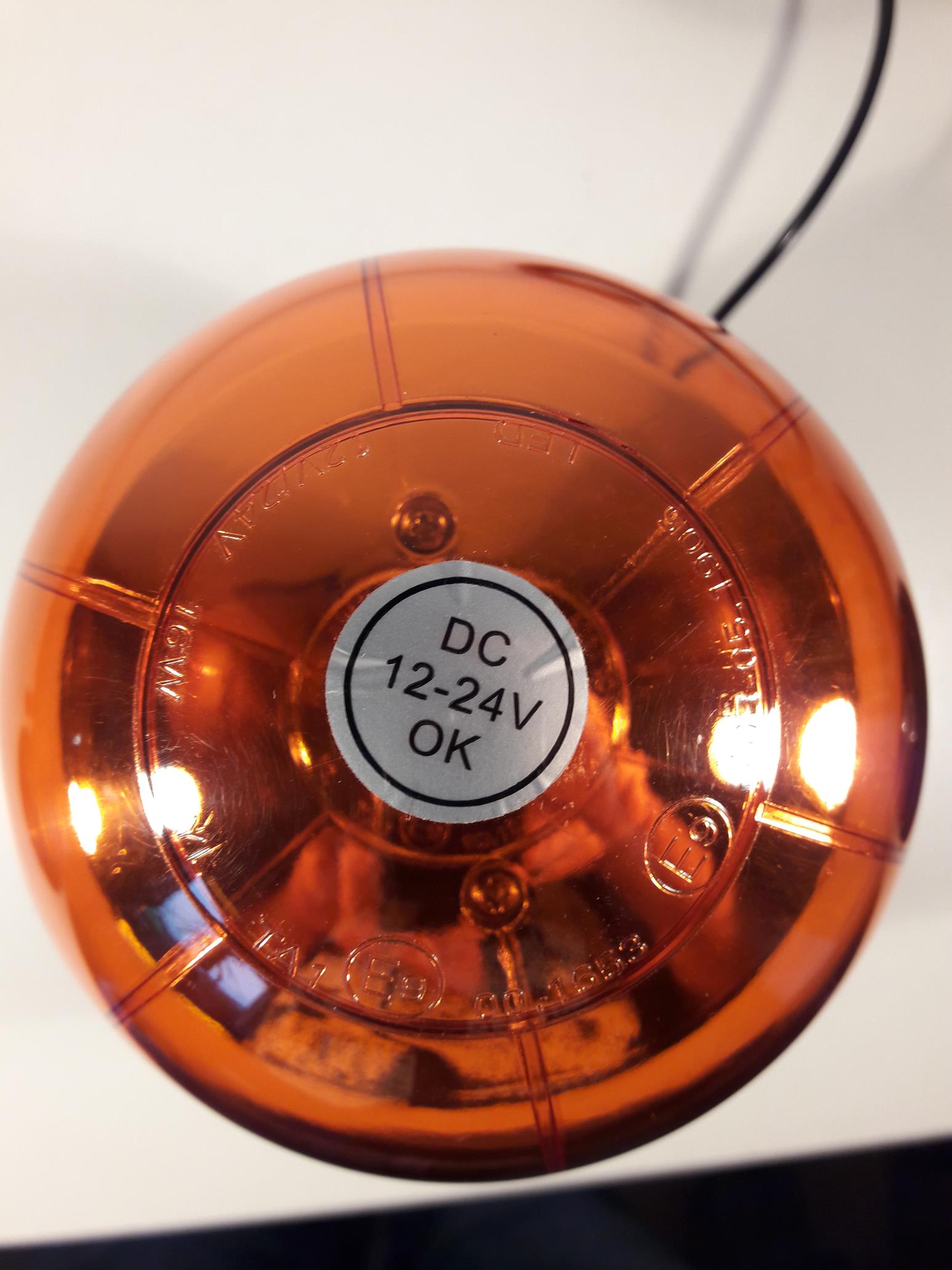 Auf den ersten Blick hat diese Leuchte große Ähnlichkeit mit der bereits vorgestellten FKS-Rundumleuchte mit Magnetfuß. Zu den Gemeinsamkeiten und Unterschieden jedoch später mehr. Die Stromversorgung erfolgt über ein relativ dünnes und bei größerer Zugbelastung zum ausleiern neigenden Spiralkabel mit Universalstecker. Hervorzuheben sind die Glattanteile stecker- und leuchtenseitig. Durch fünf runde Magneten, die unter einer schwarzen Folie verborgen sind, und eine Art Sauglippe wird die ca. 620 Gramm schwere Leuchte auf Stahlflächen und anderen magnetischen Untergründen gehalten. Hinweise auf die zulässige Höchstgeschwindigkeit oder andere Angaben sind an der Leuchte nicht vorhanden. Der Aufkleber deutet jedoch auf das Produktionsdatum (7/2016) hin. Die Lichthaube ist durch sechs Stege (innen erhaben) unterteilt und mit einem Innengewinde auf das Leuchtengehäuse geschraubt. Auf der Lichthaube befindet sich ein silberner Aufkleber, der auf die Fahigkeit zur Verwendung von 12 und 24 Volt Betriebsspannung hinweist. Weiter sind hier die Zulassungsnummern, Hinweise auf die Betriebsspannung und das Leuchtmittel kreisförmig angeordnet zu finden: "12V/24 V" "16W" "YL" "TA1 E9[im Kreis] 00.1653" "E9[im Kreis] 10R-05.1905" "LED" Lichthaube von oben, ohne Leuchte / spiegelnden Untergrund. Nach dem Entfernen der Lichthaube ist der Blick auf das Gewinde für die Lichthaube mit einem Gummiring (zur Abdichtung) und die zwei Decks mit den LED frei. Insgesamt 8 LED pro Deck leuchten nach oben. Durch einen verspiegelten, pilzförmigen Reflektor darüber wird das Licht seitlich abgelenkt. Die Leuchte verfügt über drei Leuchtmodi (Drehsimulation, einfaches Blinken und Achtfachblitz). Sie können durch betätigen eines der drei Dip-Schalter ausgewählt werden. Die gezeigte Schalterposition (1) schaltet die Drehsimulation. Im direkten Vergleich mit der Drehspiegelleuchte von FKS fällt die Gleichheit der Hauben- und Gehäuseform auf. Jedoch ist der Magnetsauger der LED-Leuchte etwas hochbeiniger angebracht. Auch die Zulassungsnummern auf den Hauben unterscheiden sich. Die FKS-Leuchte verfügt zudem über kein Gewinde in der Haube, sondern Stege. Ein Haubentausch ist damit nicht möglich. Die hier vorgestellte LED-Leuchte macht eine ganz ordentliche Drehsimulation - im Vergleich zur FKS-Leuchte und im Low Budget-Bereich. Das Einzelblinken ist wenig aufregend, jedoch ausreichend hell. Der Achtfachblitz verbreitet ein hektisches, jedoch auf Distanz schwächelndes Signalbild. Abseits des Dauer- und Profieinsatzes hat diese Leuchte, außerhalb von Autobahnen und Schnellstraßen, sicher ihre Berechtigung und wird Abnehmer finden. Hier ein Video mit den drei Blitzmustern: |