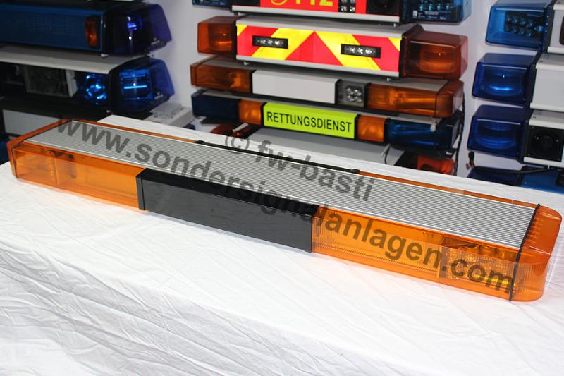 Die Hauptmodule bestehen, wie bei Hänsch üblich aus 8 LEDs welche mit einer Streulinse versehen sind. Insgesamt sind im Balken also 32 LEDs als Hauptkennleuchten vorhanden. Weitere Module wie Powerblitz, ASW oder RWS können nachgerüstet werden. In meinem Fall sind 2 Zusatzmodule mit jeweils 8 weiteren LEDs nach vorne verbaut. Wie immer bei Hänsch befindet sich das Typenschild jeweils seitlich. Besonderheit hier: Trotz Gelb wird der Balken als DBS und nicht als DBW aufgeführt, jedoch wird mit dem G in der Bezeichnung explizit auf die gelbe Variante hingewiesen. Das K2 am Ende steht für die mögliche Tag/Nachtumschaltung. Weitere Besonderheit bei meinem DBS: Die beiden Hauptkennleuchtenmodule sind alternierend synchronisiert. Aktivierte HKL ohne Zusatzmodule, trotzdem noch eine satte Lichtausbeute! Die LEDs der gelben Variante sind warmweiß. Die gelbe Färbung wird durch die Linsen erreicht. Das Zusatzmodul im Detail. Es handelt sich um die selbe Platine wie bei den HKL oder im DBS 3000 LED, nur mit anderen Linsen. Auch bei den Typ 40 LED findet eine solche Platine Verwendung. Das Modul wird direkt mit der Hauptkennleuchte auf der gleichen Seite synchronisiert. Ein "Alleinbetrieb" des Zusatzmodules ist nicht möglich, da erst von der HKL eine Freischaltung erfolgen muss. Der Kabelsatz aus dem Balken besteht aus Spannungsversorgung, sowie der Steuerleitung für HKL ein, Zusatzblitzer ein, Umschaltung auf Nachtmodus, sowie den Kontrollleitungen. Fazit: Sonnenbrille nicht vergessen! Die Lichtleistung mit den Zusatzmodulen ist wirklich Wahnsinn und tut fast in den Augen weh. |