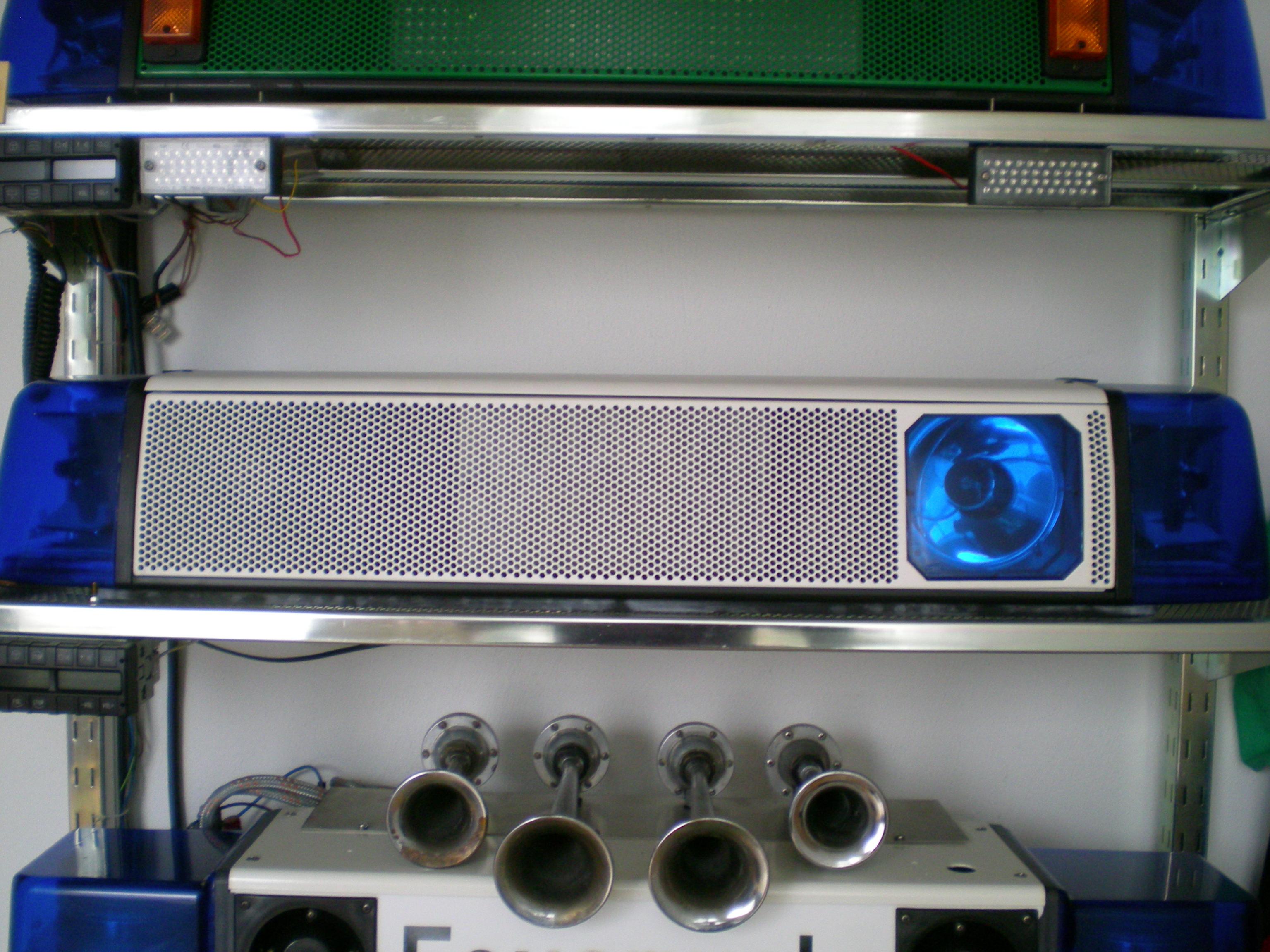 Vor ab, bitte entschuldigt das leichte Chaos in meine Ersatzteilabteilung, aber demnächst soll noch ein Regal dazu kommen ![]() Zuerst meine Übersicht. Ich werde die Leuchten immer Regalbrettweise vorstellen. Alle Leuchten die ihr in meiner Sammlung seht sind funktionstüchtig und auch alle angeschlossen. Auf dem obersten Boden befinden sich nur Leuchten von Hänsch. Die folgenden Leuchten haben alle 12V und können über die Schalter geschaltet werden. Ich denke jedem dürfte diese Leuchten bekannt sein ![]() 2x Hänsch Comet 3X Hänsch Saturn 1x Hänsch Typ 08 ? 1x Typ 09 mit Sputnik Nano Mobil 1x Comet-M Gelb 9-32V Und die Schalter Als nächste kommt eine RTK 6SL POL die Anlage ist ausgestattet mit: KL-XR LED-ASG vorne und hinten LSP-V LSP-H HWL-GL Stauschild KL-A sowie eine BE Meine RTK 6 SL NA Ausstattung: KL-XR BSX-F NA-ASG vorne und hinten LSP-V HWL-LED angeschlossen sowie eine BE Mein DBS 3000 (Lieblingsbalken ) Ehemals POL DBS, habe ihn umgebaut, die ASG´s rausgeschmissen und neu Pulverbeschichten lassen. http://sosi.myds.me/forum/showthread...light=DBS+3000 Zur Ausstattung: Doppelblitzer Sosi Typ 400 Martinhorn GM 2297 aufgebaut. Gesteuert wird der DBS über Einzelschalter. Die Martin ist natürlich auch angeklemmt Als letzter Balken kommt meine Whelen Mini-Edge, der hat momentan leider kein Platz im Regal, wenn das neue Regal da ist aber schon. Der Mini-Edge hat 4 Cornerstrobes mit Trippelblitz Meine Gelblicht-Ecke Die soll auch umgelagert werden, bisher nur einfach hingestellt ![]() Zu guter Letzt mein Ersatzteil- und Kataloglager. Da liegt alles was sich so ansammelt, was man vielleicht mal brauchen kann, Ersatz- sowie Reparaturteile. Davon gibts jetzt aber kein Bild, das ist wirklich zu unordentlich.