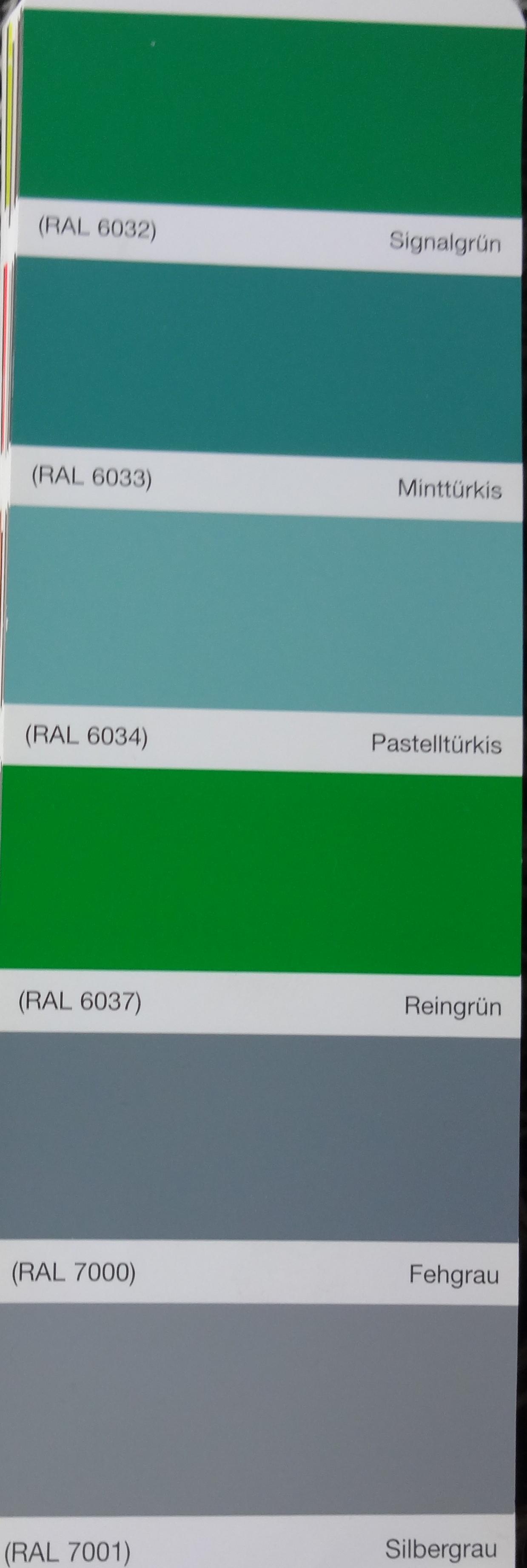 Aber auch die im Neumann Prospekt gezeigte Farbe, die wie die der alten Notrufsäulen zu sein scheint, ist nicht RAL 6033, gemäss meinem Farbfächer