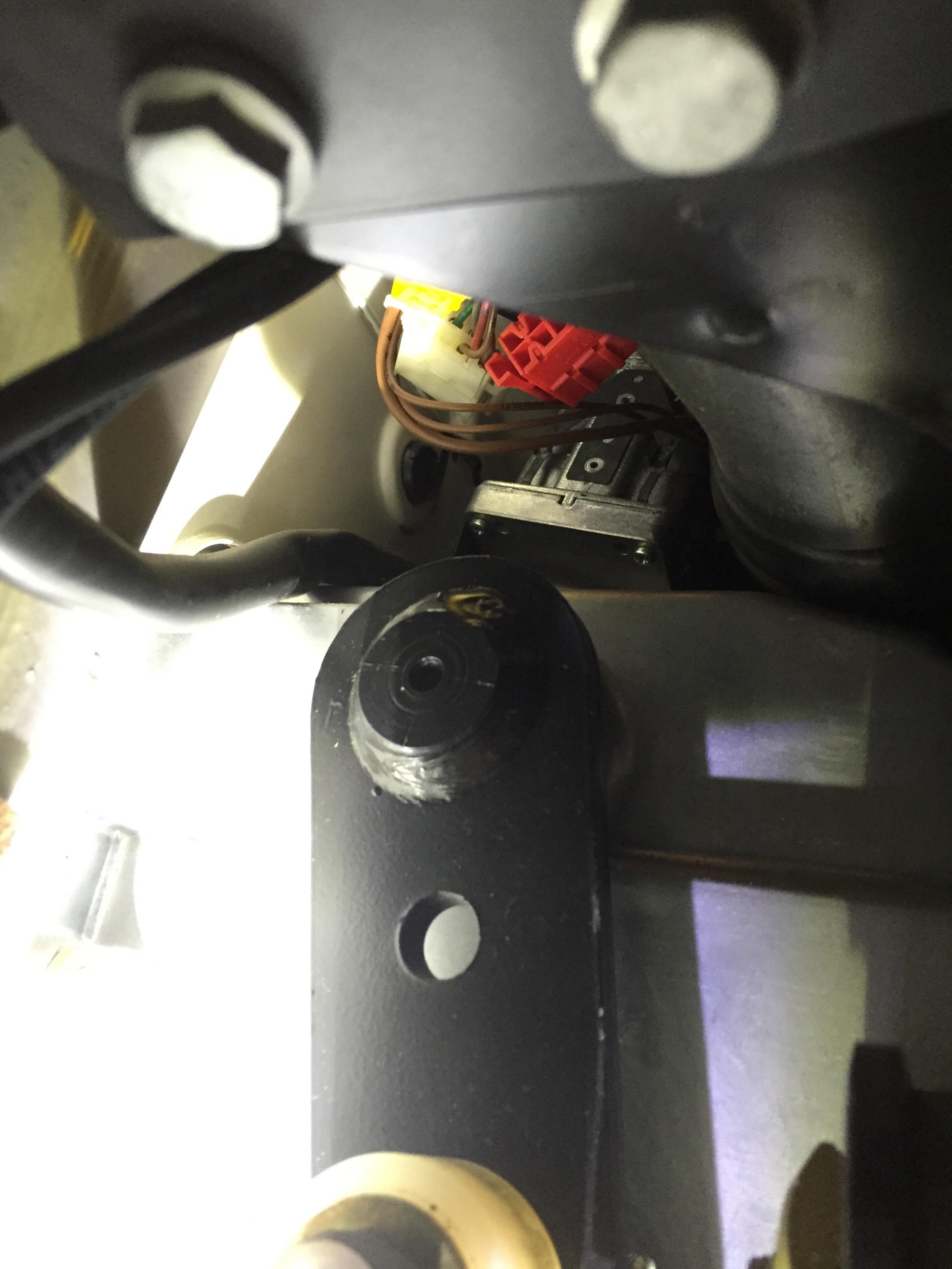 Der silberne Kasten unterhalb der 3 braunen Kabel und dem roten Stecker müsste es sein