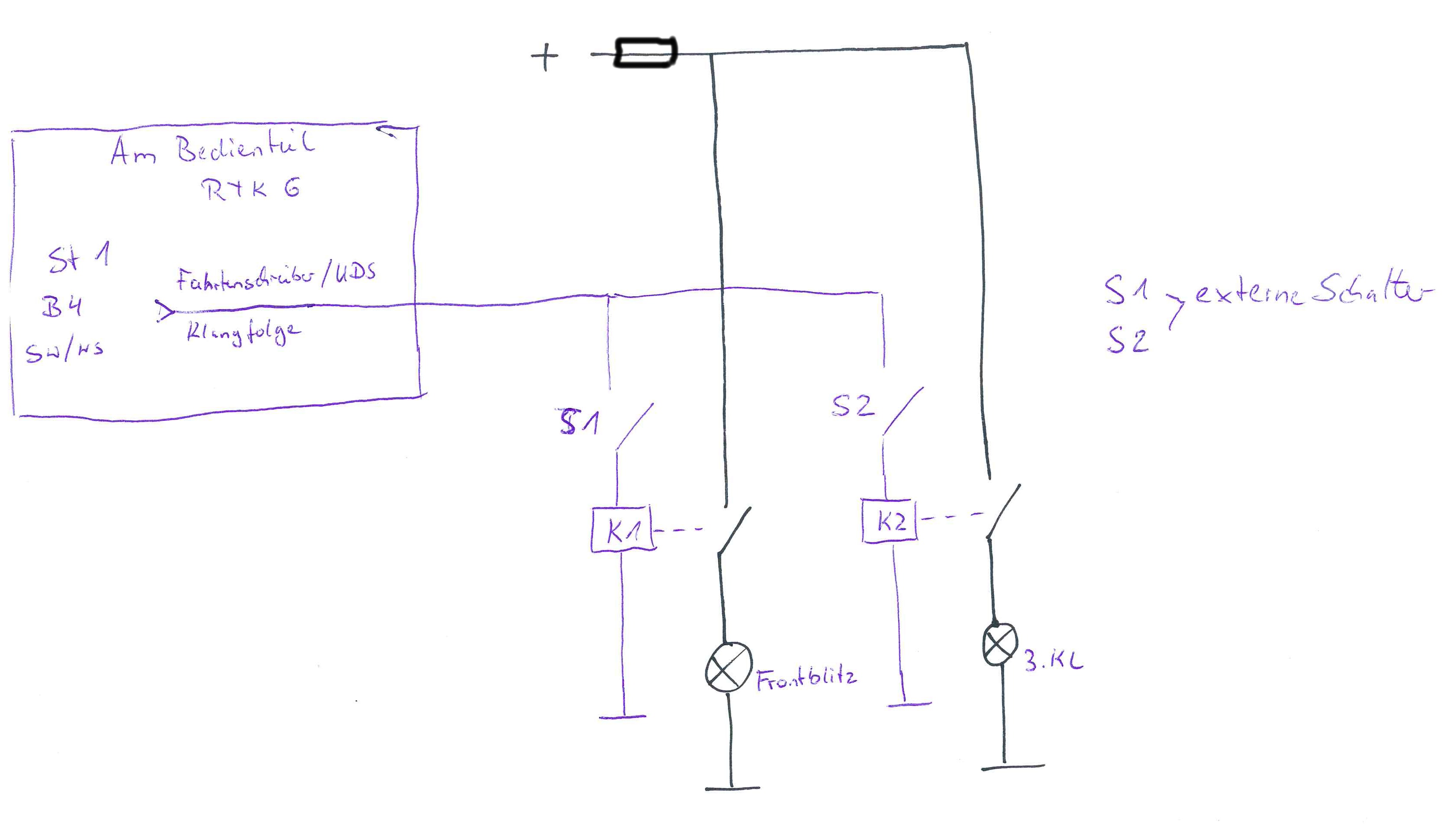 Auch mit den alten BE's können problemlos die Frontblitzer / Heckkkennleuchten ein und aus geschaltet werden. Wir haben das bei zwei Fahrzeugen über zusätzliche Schalter im Armaturenbrett gelöst.