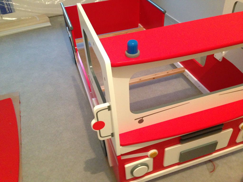 Nun ging es also daran, das Zimmer schön herzurichten. Dank IKEA Koblenz haben wir alles schnell gefunden, was in so ein Kinderzimmer hinein gehört. Bis auf das Bett. Da haben wir nicht schönes für Kinder gefunden. Hochbett schied von Anfang an aus, da man meiner Meinung nach außer rausfallen nichts gescheites sonst mit sowas anfangen kann. Da Paul wie fast alle Jungs die Feuerwehr total toll findet, habe ich mich nach einem Feuerwehrbett umgesehen und auch gleich etwas passendes gefunden. Ein komplettes Feuerwehrbett! Genial!!! Also bestellt und eine Woche später war es auch schon da. Leider in Einzelteilen... ...und zwar in allen Einzelteilen! Jedes kleinste Details musste extra angeschraubt werden. Das hat dann tatsächlich fast 2 Stunden gedauert aber danach sah es dafür total genial aus! Bis auf... ...die "Blaulichter"... ![]() DAS sollen Blaulichter sein???? Sorry, aber das ist für jeden blaulichtsammelnden Papa eine Schande, die man so natürlich nicht lassen kann. Also überlegte ich, was ich stattdessen machen könnte... RTK? Nein, zu groß. KL800? Joa, aber optisch nicht so ganz passend weil schmal und hoch. Hänsch Comet? Movia D? Hmm... Auf einmal fiel mir der Hänsch DBS 2000, den ich vor 2 Jahren angefangen hatte zu restaurieren. Dieser stammte vom alten Kommandowagen meines Wehrleiters. Damals hatte ich den "Body" komplett fertig. Nur die Blitztöpfe sollten überarbeitet werden. Den DBS2000-Body habe ich dann auf dem Dachboden auch schnell gefunden. Nur der Rest war irgendwie beim Umzug verloren gegangen. Naja, darum kümmere ich später. Das Gehäuse muss ja erstmal aufs Dach. Also erstmal alles genau ausgemessen und aufs Papier gebracht. Dann die optimale, mittige Position ermittelt und schließlich die Löcher gebohrt. Danach musste ich feststellen, dass die Hauben nicht mehr passen würden, wenn der Balken plan auf dem Holzdach aufliegt, da die Seitenwände des Autos etwas höher als die Dachfläche sind. Der Balken musste also 2cm hochgesetzt werden. Zum Glück kam mein Schreiner zu Besuch um im Keller die letzten Türen des Wasserschadens auszutauschen. Ich zeigte ihm das Bett und er war total begeistert von der Idee. Er fertigte mir auf der Drehbank vier Holzscheiben in der gewünschten Dicke an und lackeirte sie mir auch schon gleich grau. Top!!! Nächstes Problem waren die Schrauben... Sucht mal bitte nach M8er Schrauben mit Senkkopf, die möglichst lang sind... Sowas gibts im Baumarkt nicht. Ich bin letzendlich in Mayen bei einem Eisenwarenladen fündig geworden.Nun hatte ich also alles zum montieren da: Das sieht doch schonmal nicht schlecht aus!!! Leider sind trotz wiedeholter Suche die fehlenden Teile des DBS2000 nicht wieder aufgetaucht. Außerdem kam mir als ich so vor Balken mit den schönen nagelneuen Milchglas-Plexiglasscheiben stand die Idee, dass Paul ja auch noch ein Bettlicht braucht. Da würde sich so eine Innenbeleuchtung doch prima anbieten! Aber wie? 12Volt Sofittenlampen waren jetzt nicht das was ich wollte, denn dafür hätte ich wieder ein Netzteil gebraucht. Das muss doch auch einfacher gehen... Tut es auch! In der Lampenabteilung von IKEA entdeckte ich dann Onkel JANSJÖ aus Schweden für 9.- Euro. Eine LED Schwanenhalslampe. Die nahm ich gleich mit. Zu Hause drehte ich Ihr dann im wahrsten Sinne des Wortes den Hals rum, sodass ich nach viel Gewalt nur noch den Kopf in der Hand hielt. Linse raus, Reflektor raus, Kabel aus dem Schwanenhals raus und neu auf dem Chip verlöten. Nun musste ich nur noch schauen, dass ich das Licht homogen verteilt bekomme. Da fiel mir ein, dass ich vor einiger Zeit mal RGB-LED-Dekokugeln aus Gummi das dem Bauhaus für 2 Euro das Stück gekauft hatte (rechts im Bild). Paul hatte damals als Baby Spass damit. Eine neue hatte ich noch übrig. Also habe ich das im Boden eingeklebte LED-Licht rausgenommen und hatte nun eine perfekte Diffusorkugel für den Lampenkopf vom JANSJÖ. Passte perfekt! Nun hatte ich eine super Innenbeleuchtung für den DBS2000! ![]() An dieser Stelle war dann aber erstmal Feierabend, denn auch nach weiteren Suchdurchgängen fehlten die restlichen Teile für den DBS2000. Also startete ich eine Suchanfrage im Forum. Nach ein paar Tagen meldete sich HFK2000 (Benjamin) bei mir, bedankte sich für das schöne Forum und schenkte mir mal gerade eben 2 flammneue Blitztöpfe der neuesten Generation mit Birnen und Kabel sowie eine ganze Kiste mit den fehlenden Schrauben... ![]() ![]() ![]() ![]() Ich möchte mich daher an dieser Stelle nochmal ganz herzlich bei Benjamin bedanken!!! Ohne Dich hätte ich dieses Bett wohl nicht fertig bekommen. Nochmals tausend Dank!!! ![]() Dank Benjamins Hilfe konnte ich nun also endlich die Blitztöpfe anbringen. Nagelneue Hauben drauf und fertig! ![]() Nun galt es aber noch, die Kabel zu verlegen. Das 2,5mm² Kabel ist schon recht störrisch. Vor allem musste der Schalter der Innenbeleuchtung irgendwo hinverlegt werden, wo Paul ihn auch im Liegen bedienen kann. Im Bauhaus fand ich denn einen passenden Kabelkanal. Diesen sägte und feilte ich dann mühsam zurecht. Auch eine optimale Position für den Schalter habe ich gefunden. Lattenrost noch rein... FERTIG!!!!!!! |