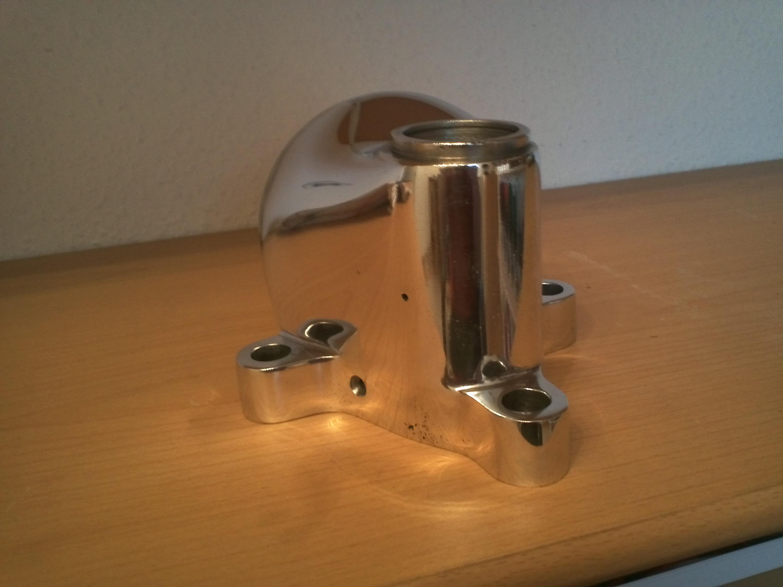 An der Kuppel direkt sind nur ein paar Dellen die raus müssen. Nach der Aufarbeitung bzw. dem neu verchromen wird davon nix mehr zu sehen sein. | ||