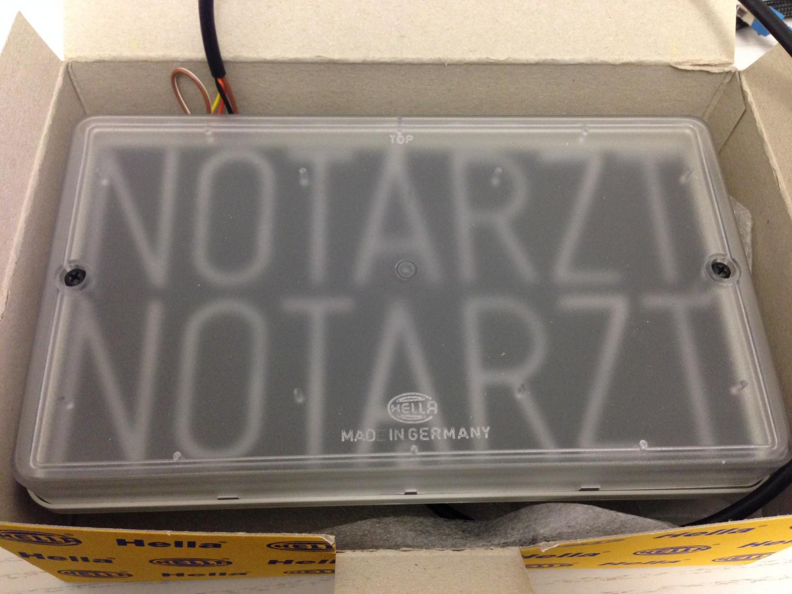 Meines Wissens nein: bei der Polizei möchte man ja, dass nur der Verkehrsteilnehmer vor bzw hinter dem Fahrzeug die Nachricht liest. Beim Notarzt möchte man ja "gesehen" werden...