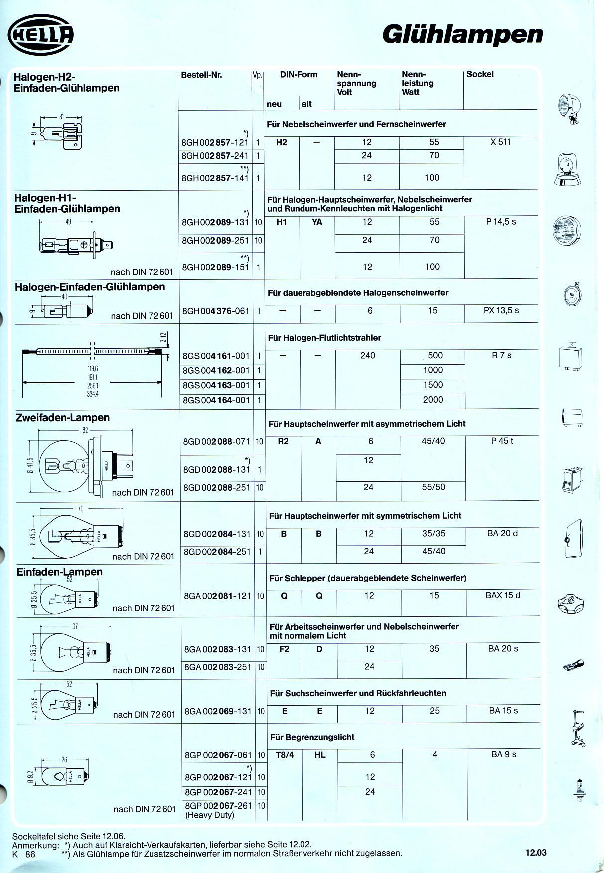 So, jetzt könnte ich glauben, in den HELLA 130/95 Ri gehört eine 100-W-Lampe mit BA 20 d. Aber als Agnostiker weiß ich nicht, ob ich das auch glauben kann. 100 Watt - egal ob bei 6, 12 oder 24 Volt - erscheinen mir für die damalige Zeit ein wenig viel.