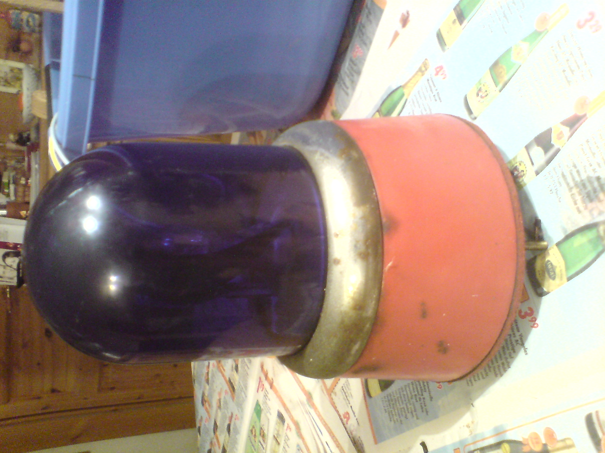 Ich hab gestern die Leuchte geputzt und von dem hässlichen Kasten befreit. Außerdem hab ich ein Leuchtmittel eingesetzt und nun blinkt sie wieder .