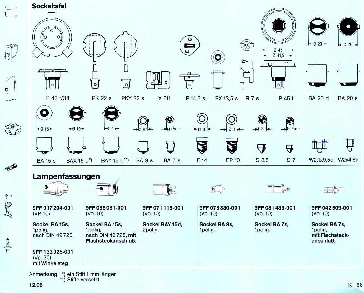 Offensichtlich ist das ein "normaler" Kfz-Scheinwerfer mit einer planen kobaltblauen Lichtaustrittscheibe mit 130 mm Durchmesser. Auf dem Frontring ist gegenüber der angenieteten Befestigungslasche ein HELLA-Emblem graviert. Die Lampenfassung ist für eine "Standlichtlampe" mit Sockel BA9s und eine Zweifadenlampe mit Sockel BA20s vorgesehen. Der geschlitzte Stecksockel erinnert an den von Rundumkennleuchten, ist aber ein wenig zu eng für die bekannten Aufsteckrohre.