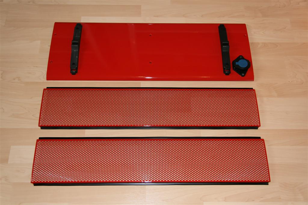 Er stammt frisch von einem verunfallten Leasing-Polizeifahrzeug und war ursprünglich grün. Jedoch hatte er eine ziemlich gute Ausstattung (2x Matrix, HWL-GL, BSX-F). Da der Balken jedoch auf den Kommandowagen des Wehrleiters unserer VG seinen neuen Einsatzort findet sollte, wurde er auf die Basisaustattung reduziert. Die übrig gebliebenen Teile fanden bei mir jedoch noch eine passende Verwendung. Der Balken bekam von mir wie gehabt eine first-class Generalüberholung und wurde unter anderem komplett neu lackiert. Die Lackierung der Blenden sowie des Deckels wurde durch eine Lackiererei übernommen. Am Ende kam eine RTK 6-SL in RAL 3000 mit 2x KL-XR, LSP-V, KL-A und Info-G bei raus. Der Balken wurde durch die örtliche Werkstatt professionell und gewissenhaft montiert. Das hier ist der DBS3000, der bis dahin auf dem Kommandowagen (Nissan Primera) verbaut war. Leider waren die beiden DKLs durch einen Wasserschaden nun schon zum zweiten mal defekt. Derzeit werden sie von der Firma Hänsch (vermutlich auf Kulanz) repariert. Der Balken soll anschliessend wieder auf einen MTW montiert werden. VORHER: (Update 13.06.2010) NACHHER: |