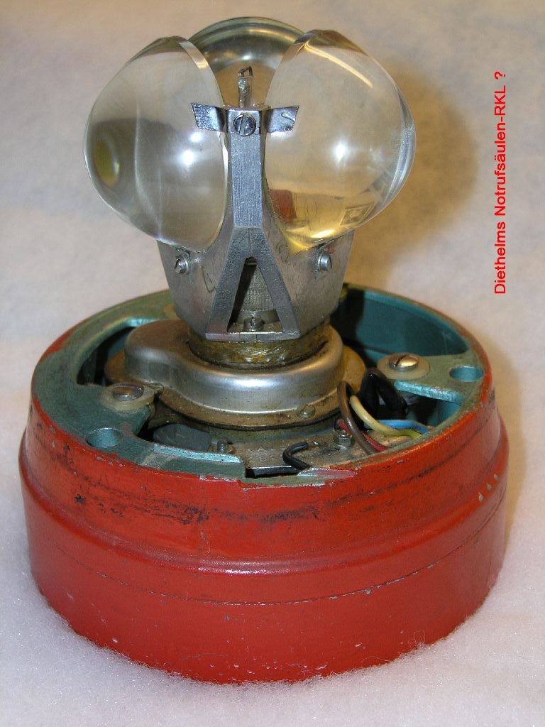 Interessant ist, daß in Deiner Leuchte eine H1 Lampe verbaut ist. Habe ich bis jetzt noch nicht in dieser alten Bauform von PB gesehen. Bist Du sicher, daß sie von einer Notrufsäule stammt und nicht von einem Einsatzfahrzeug? Die Notrufsäulenleuchten hatten den unteren Sockelteil in kegelform, Deiner ist dagegen zylindrisch.