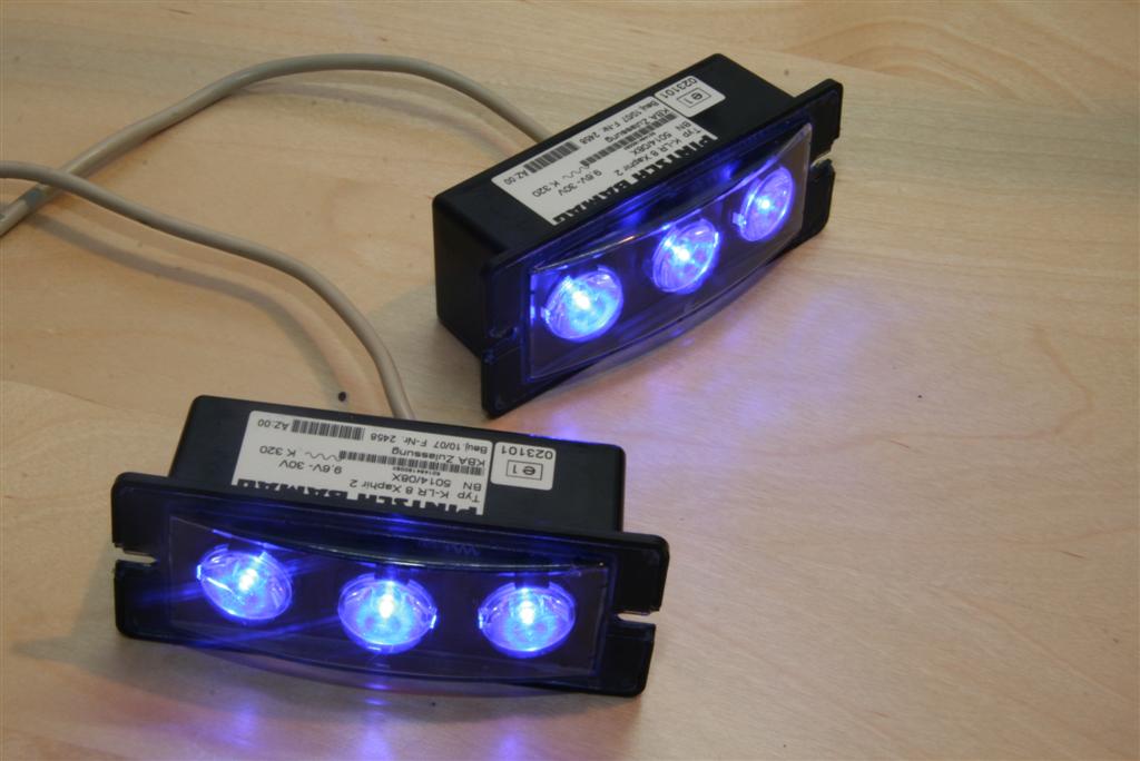 Ganz schön hell die Dinger... (sind auch meine ersten LED Blitzer )Was ich aber schade finde, ist das man immer nur eine LED "effektiv" leuchten sieht. Die geriffelten Linsen (wie teilweise bei dem Hella BS-F) währen da glaube ich Sinnvoller gewesen.