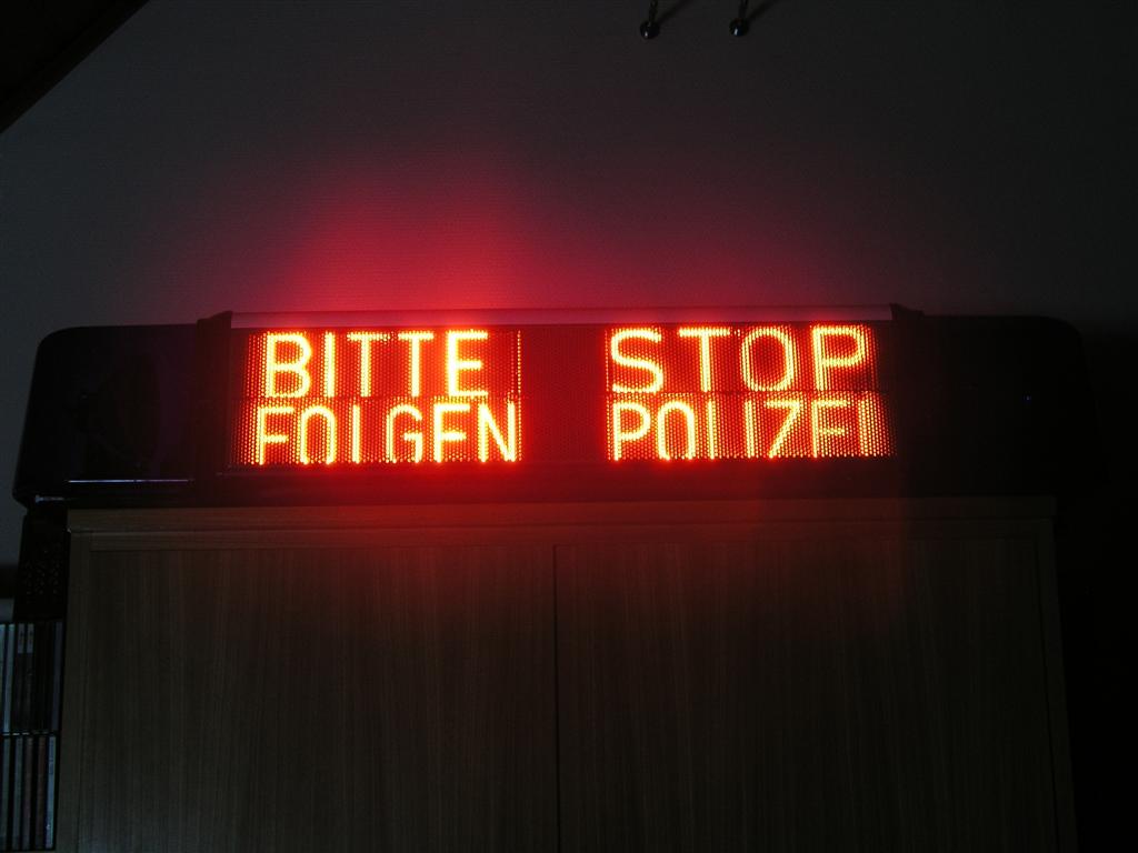 Diese RTK ist mit 2 nach vorne gerichteten Lautsprechern ausgestattet und besitzt 3 Anhaltesignalgeber (ASG). 2 nach hinten (BITTE FOLGEN / STOP POLIZEI) und einer nach vorne (STOP POLIZEI in Spiegelschrift).