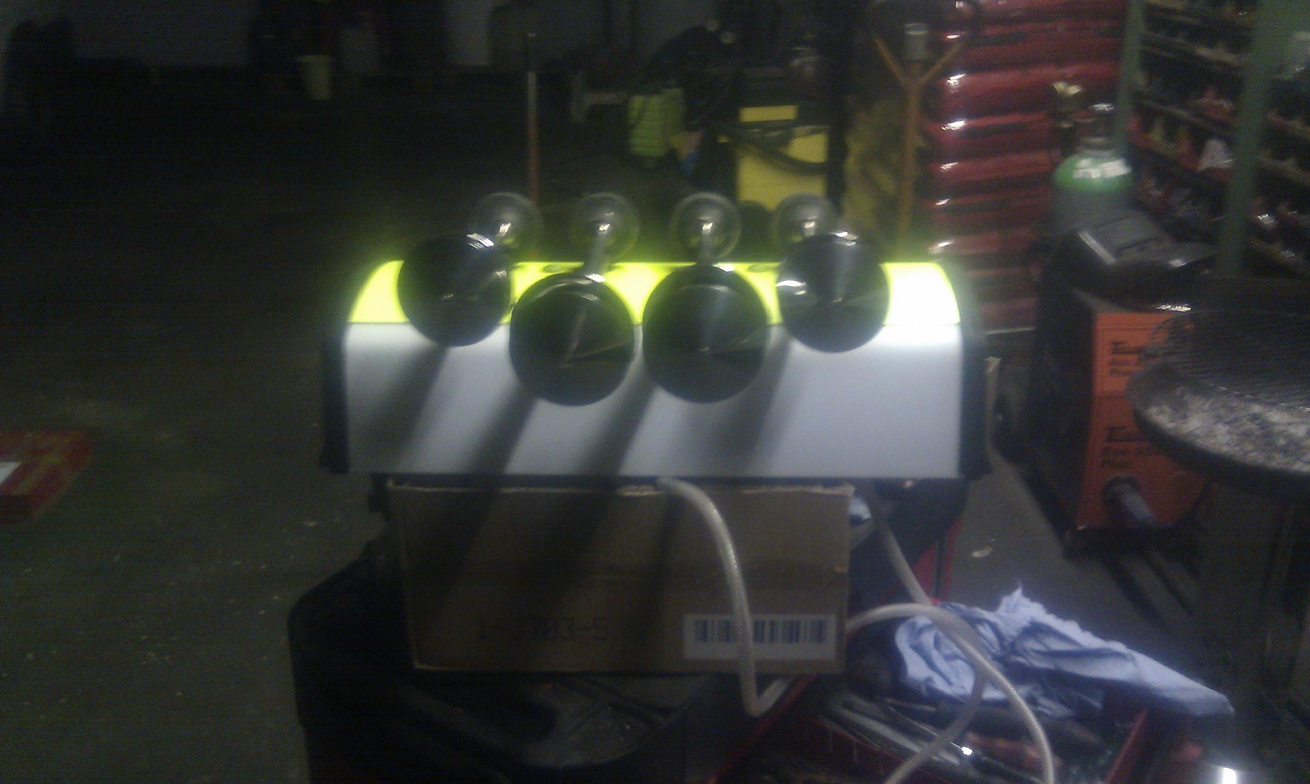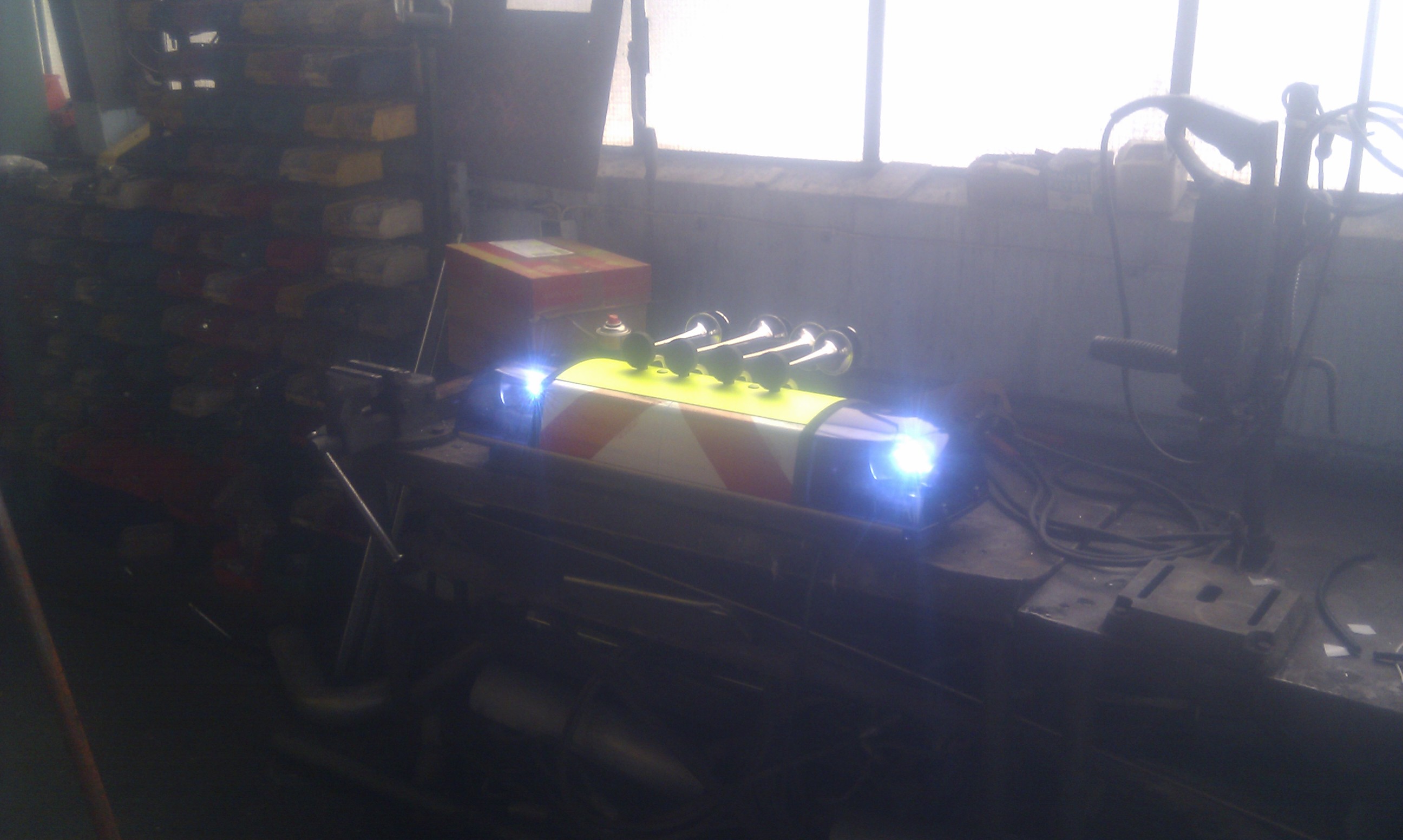 Deckel lakiert in Neongelb, Polizeischriftzüge enfernt, Presslufthorn montiert und Drehspiegel gefettet und Reflexmakierung angebracht