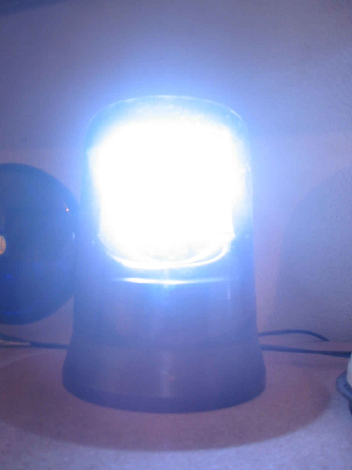 Hier ist meine RKLE 110 zu sehen, sie ist für 12 Volt und zur Festmontage. Bis auf ein paar Kratzer und das die Halogenbirnenhalterung etwas schief ist, ist sie in einem guten Zustand. Ich habe sie auf einem Trödelmarkt bekommen, zu der Zeit hatte sie noch ein 230 Volt Kabel und einen KFZ-Gerätestecker montiert, so konnte ich sie auch gleich vor Ort auf Funktion überprüfen.