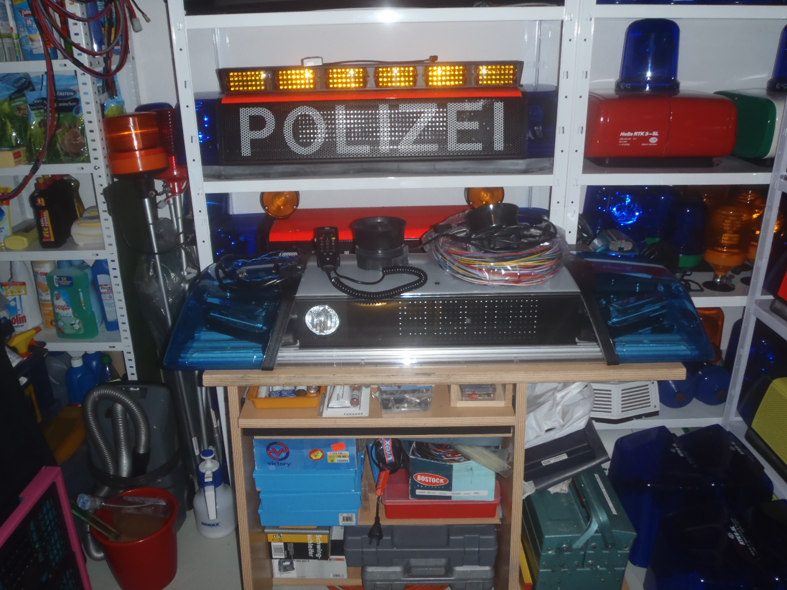 ![]() ![]() Mit der Anlage werde ich mich erst mal auseinander setzen müssen. Kann sie nämlich analog oder digtal betrieben, habe alle erforderlichen Kabel, Stecker, BEs und sogar Wechsel- ASG (Vollmatrix / nur Stop Polizei) dabei. Für frei programmierbare Vollmatrix brauche ich die digitale Version. Lass mir mal ein bisschen Zeit, habe heute und morgen keine Zeit dazu. Bilder machen kannst Du gerne, aber leuchten tut da nichts. Das ist die kurze, jetzt kommt demnächst noch eine 1400mm- Version, die hat gelbe WL-LED nach hinten und roten und blauen Zusatzblitz nach vorn plus ASW und dann kommt noch eine Autobahnversion mit Aufsteckrohr usw., die hat auch Vollmatrix. Das kann aber noch ein paar Wochen dauern. | |