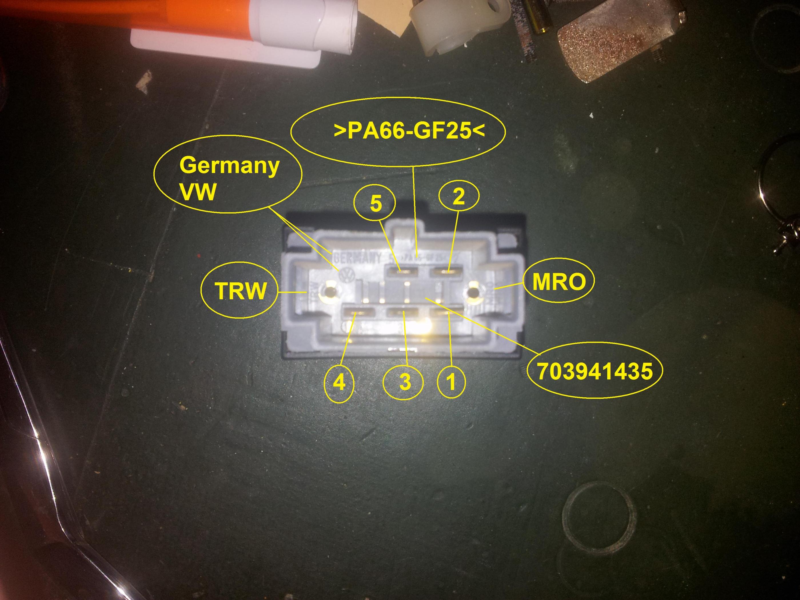 Habe auf dem Bild Mal Makiert wo 1 - 5 ist, nach dem ich mal die Stecker Abgezogen habe, ist mir auch die VW Teile nr ins Auge gesprungen.