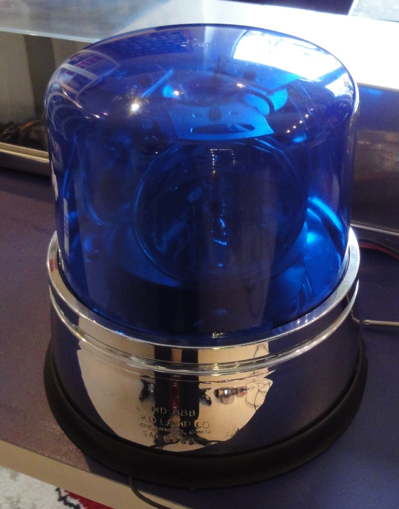 KD Lamp Company of Cincinnati, Model KD888 - Hergestellt am 2.4.1975 - 3 PAR 36 Typ 4416 Leuchtmittel mit zentraler Stromversorgung über einen Schleifkontakt Der Zustand ist durchweg als hervorragend zu beschreiben. Ich bezweifle stark das diese Leuchte bisher je auf einem Fahrzeug verbaut war. |