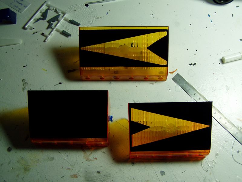 Schwarze Klebefolie aufkleben, ausschneiden. Den Pfeil anhand der Vorgaben des Originals anpassen und ebenso ausschneiden.