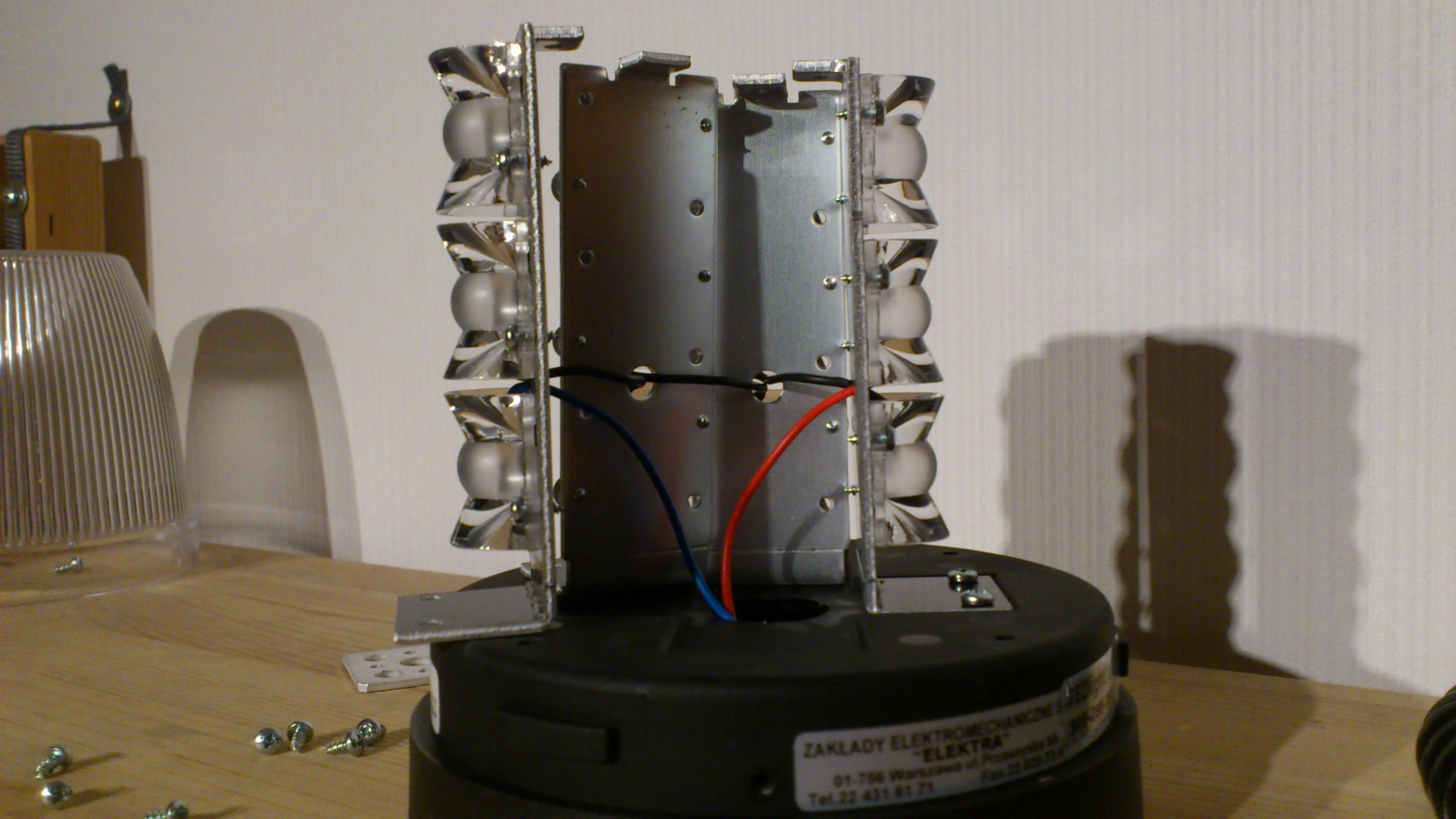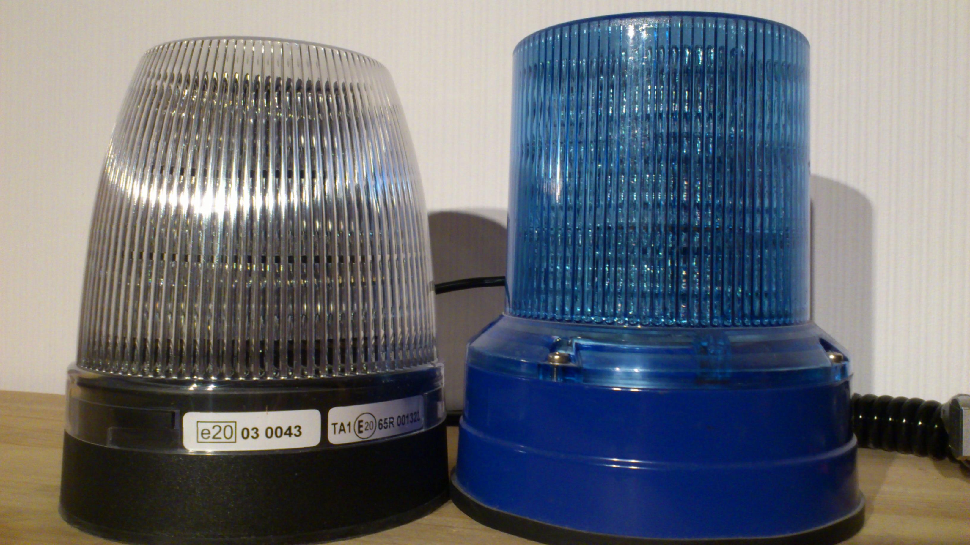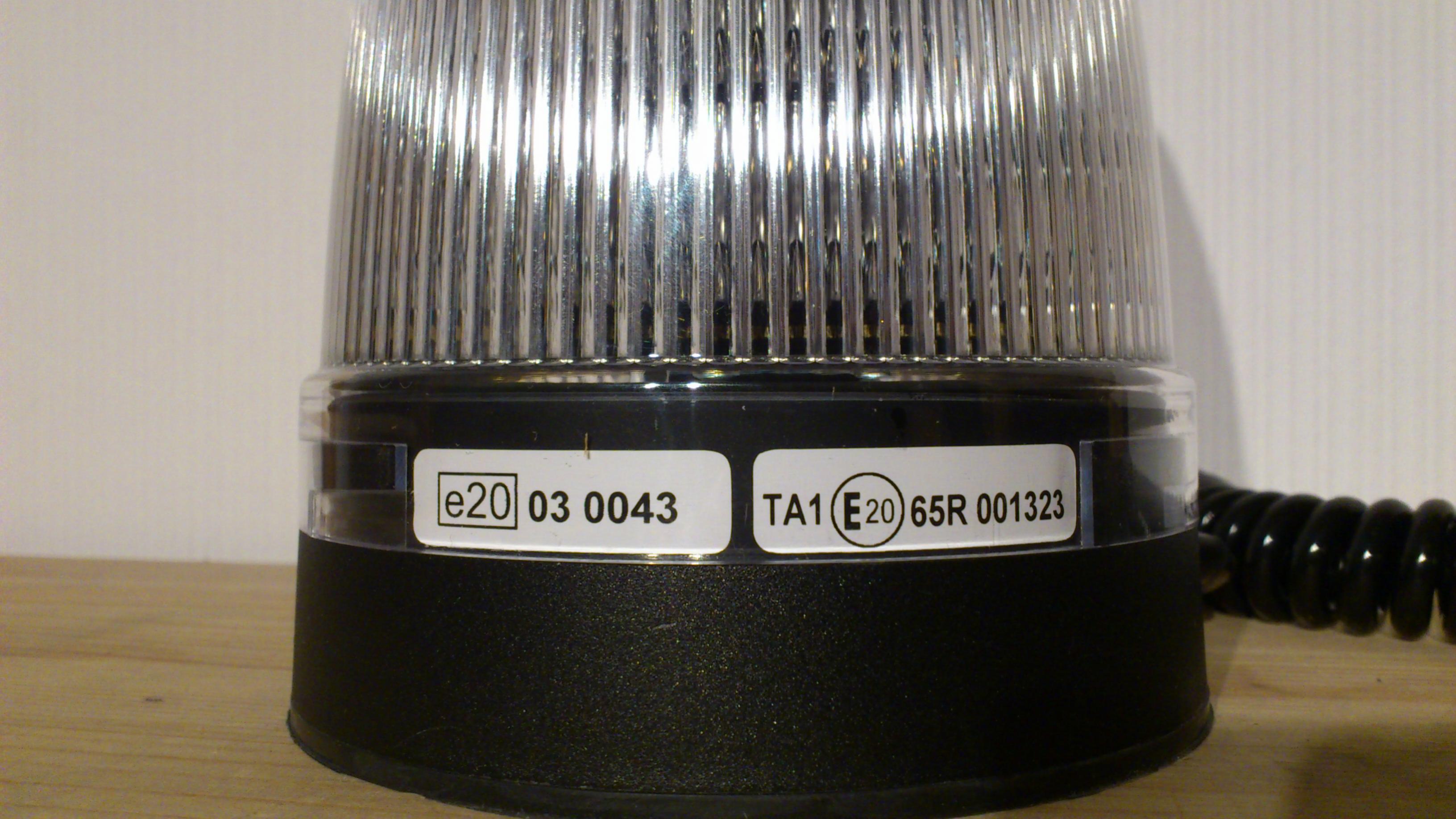 Die Leuchte ist für 12 und 24 Volt Betriebsspannung ausgelegt. Die Stromversorgung erfolgt über ein Spiralkabel mit Glattanteil an der Leuchte. Unausgezogen ist es ca. 105 cm lang, am Ende ist ein Universalstecker angebracht. Die Typenschilder sind am am Gehäuse in Form von Aufklebern angebracht und unter der Lichthaube gut lesbar. Angaben zum Hersteller: Die e- und ECE-R65 Zulassung: Angaben zum Hersteller und dem Produktionsdatum (29.03.2014): Die Lichthaube ist durch drei Aufnahmen mit dem Gebäuse verbunden und lässt sich nach dem Entfernen der Sicherungsschraube durch eine kurze Drehung gegen den Uhrzeigersinn abnehmen. Oben auf der Lichthaube wiederholt sich die ECE-R65 Zulassung "TA1 E20 [im Kreis] 001323". Weiter fällt auf, dass die Lichthaube nach oben nicht klar, sondern milchig / trübe ist. An der Unterseite des Leuchtengehäuses sind unter dem schwarzen Kunststoff vier runde Magneten erkennbar. Sie halten die Leuchte lt. Hersteller bis zu einer Geschwindigkeit von 280 km/h. Nach dem Entfernen der Lichthaube ist die Lichtquelle der Leuchte erkennbar. Jeweils drei LED mit einer Linse sind übereinander im 90° Winkel angeordnet. Drei Linsen sind jeweils an einem L-förmigen Träger angebracht. Unter der untersten Linse ist "LM-3.1 CCA V2 ELEKTRA" zu lesen. Auf diesem Bild ist deutlich erkennbar, dass die Linsen im mittleren Bereich nicht klar sind, sondern eher milchig / undurchsichtig. An der Oberseite sind die Träger mit einem viereckigen Metallstück verbunden, das für Stabilität und vermutlich auch Wärmeableitung sorgt. Nach dem das Metallstück oben abgebaut und die Verschraubung zweier Träger am Leuchtengehäuse gelöst wurde, ist erkennbar, dass jeweils drei LED zu einer Baugruppe zusammengefasst sind und die vier Gruppen augenscheinlich in Reihe geschaltet sind. Weiter lässt sich die LBL-20K1N leider nicht zerlegen, so dass der Blick auf die Platine im Gehäuse verborgen bleibt. Mit einer Höhe von 140 mm und einem Durchmesser von 120 mm ist die LBL-20K1N sogar noch etwas kleiner als die Movia D LED. Die Leuchtfläche beider Leuchten dürfte jedoch annähernd gleich groß sein. Hier ein Vergleich der Linsen beider Leuchten. Meine LBL-20K1N leuchtet orange, das Signalbild ist ein schneller Vier(?)fachblitz, gefolgt von einer längeren Pause. Auch eine gewisse Mißweisung lässt die LBL-20K1N zu, jedoch lässt die Wahrnehmbarkeit des Signals außerhalb des Fokus schnell deutlich nach. Ein interessanter optischer Effekt ist mir noch aufgefallen: Auf kurze Entfernung wirkt das Signalbild wie ein Blinken, aus der Entfernung ist der Vier(?)fachblitz deutlicher erkennbar. Ich habe mich bei der Anschaffung dieser Leuchte bewusst für das Modell mit der klaren Lichthaube entschieden, da sie mir optisch besser gefiel. Nachdem ich bereits eine LBL-20K1N mit oranger Haube in freier Wildbahn erlebt habe, muss ich nun für mich feststellen, dass mit der klaren Haube die Warnwirkung deutlich besser erscheint. |