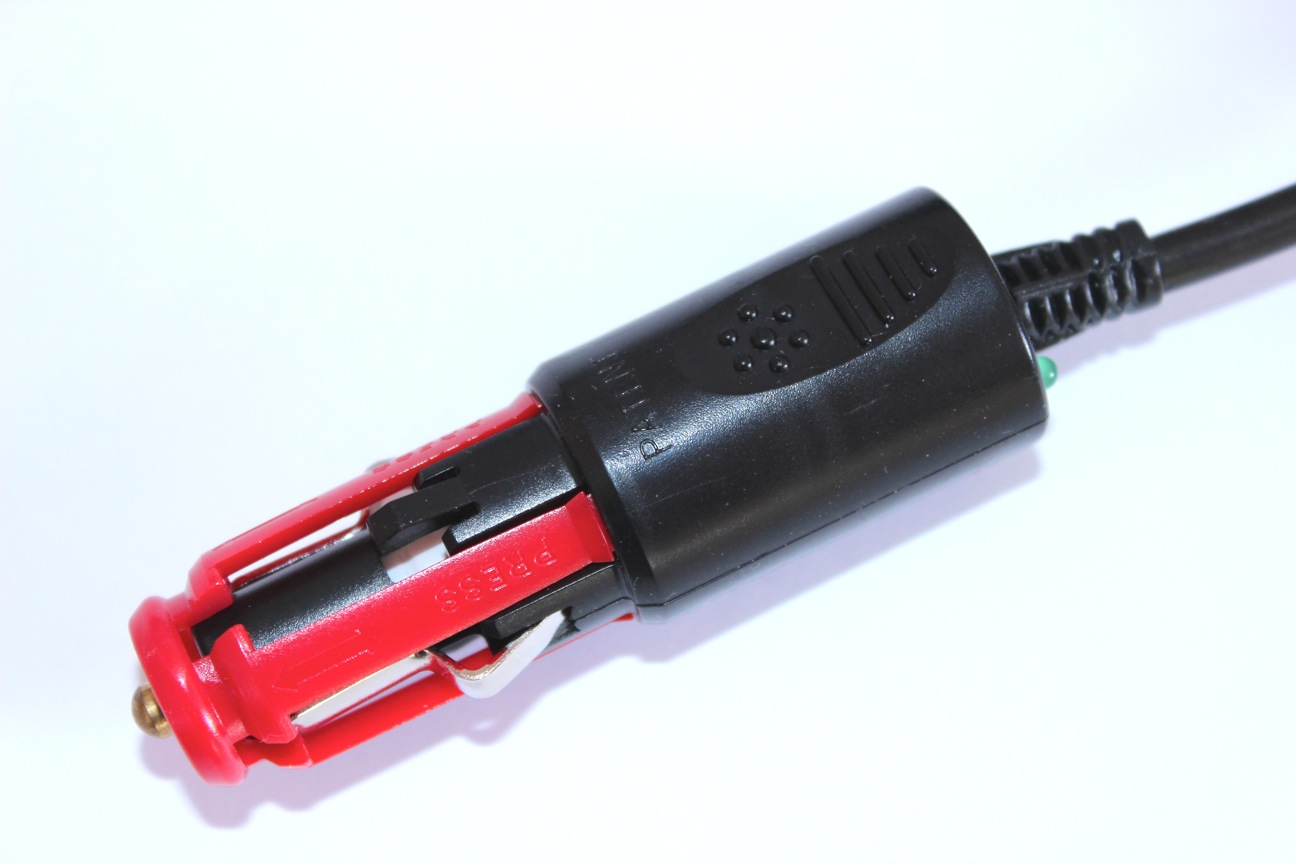 Der Anschluss erfolgt über den Zigarettenanzünder oder eine KFZ Norm Steckdose. Hier hat man sich auch etwas einfallen lassen. Der Stecker besitzt neben einer Kontroll-LED einen verschiebbaren Adapter für beide Anschlussformen. Somit kann der Anwender immer wieder auf die benötigte Steckverbindung umstellen, ohne dass der Apaterring mit der Zeit verloren gehen könnte. Das Umstellen des Adapter bedarf aber etwas Übung und sollte mit bedacht ausgeführt werden. Ein kleiner Minuspunkt bei dieser Leuchte.
