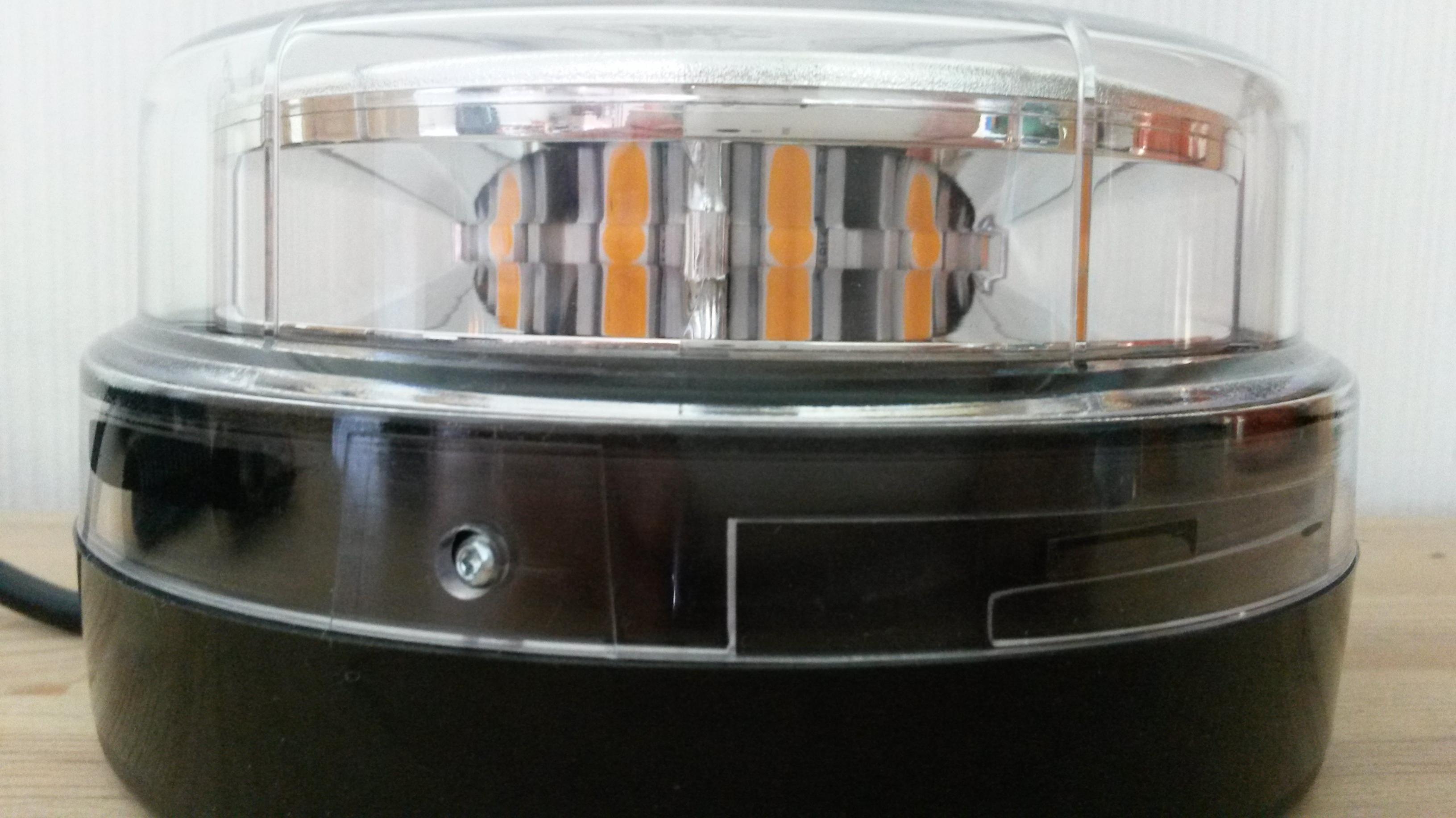 Die Kennleuchte ist mit knapp 8 cm Höhe und einem Durchmesser von 14,7 cm sehr kompakt.