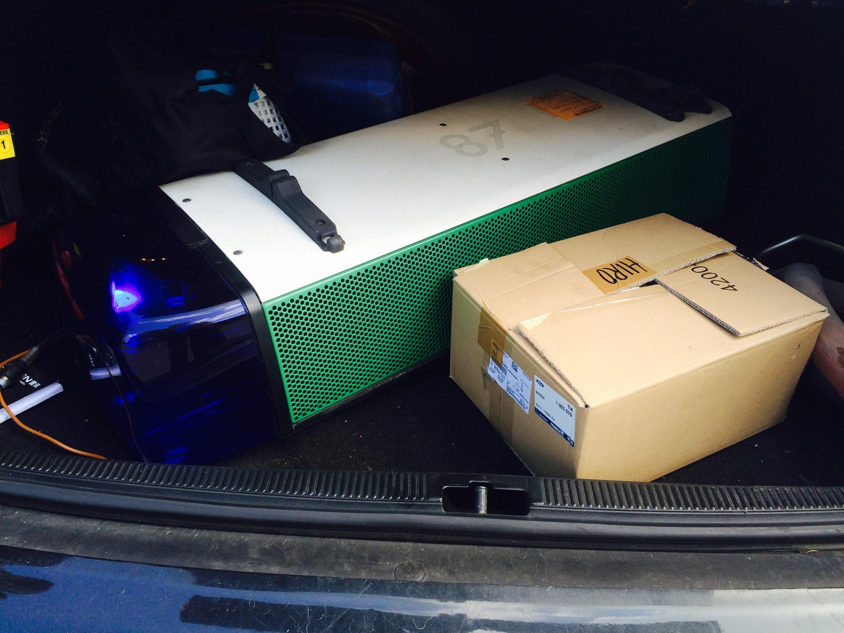 Hier erstmal ein Bild aus dem Kofferraum. Morgen werde ich ihn mal zerlegen und mich mit der Materie vertraut machen. Ich hab da trotz der langen Zeit hier im Forum keine Erfahrung. Bis auf die ganzen tollen Anlagen und die Videos, kenn ich die Anlage nur von den Einsatzfahrzeugen.