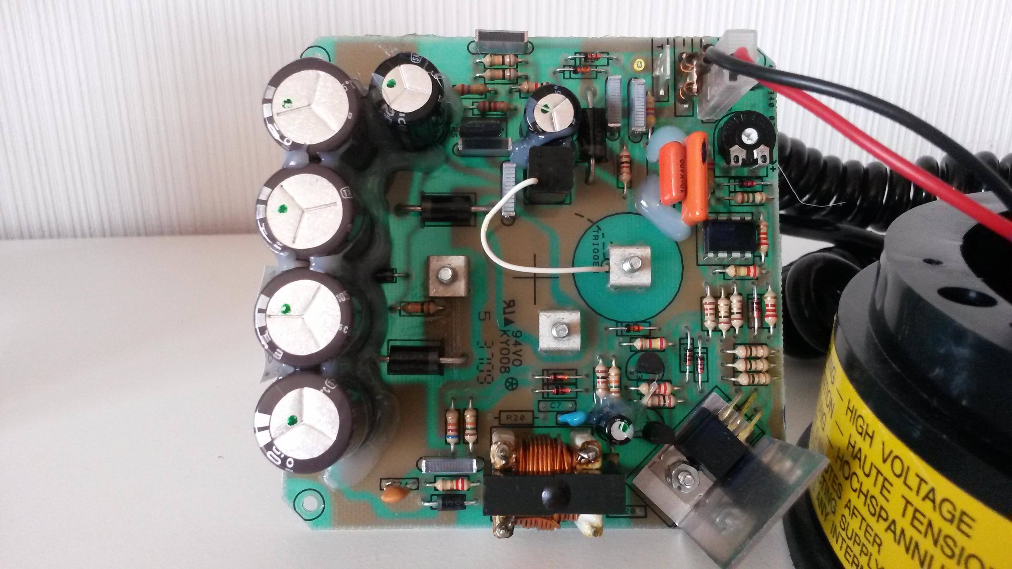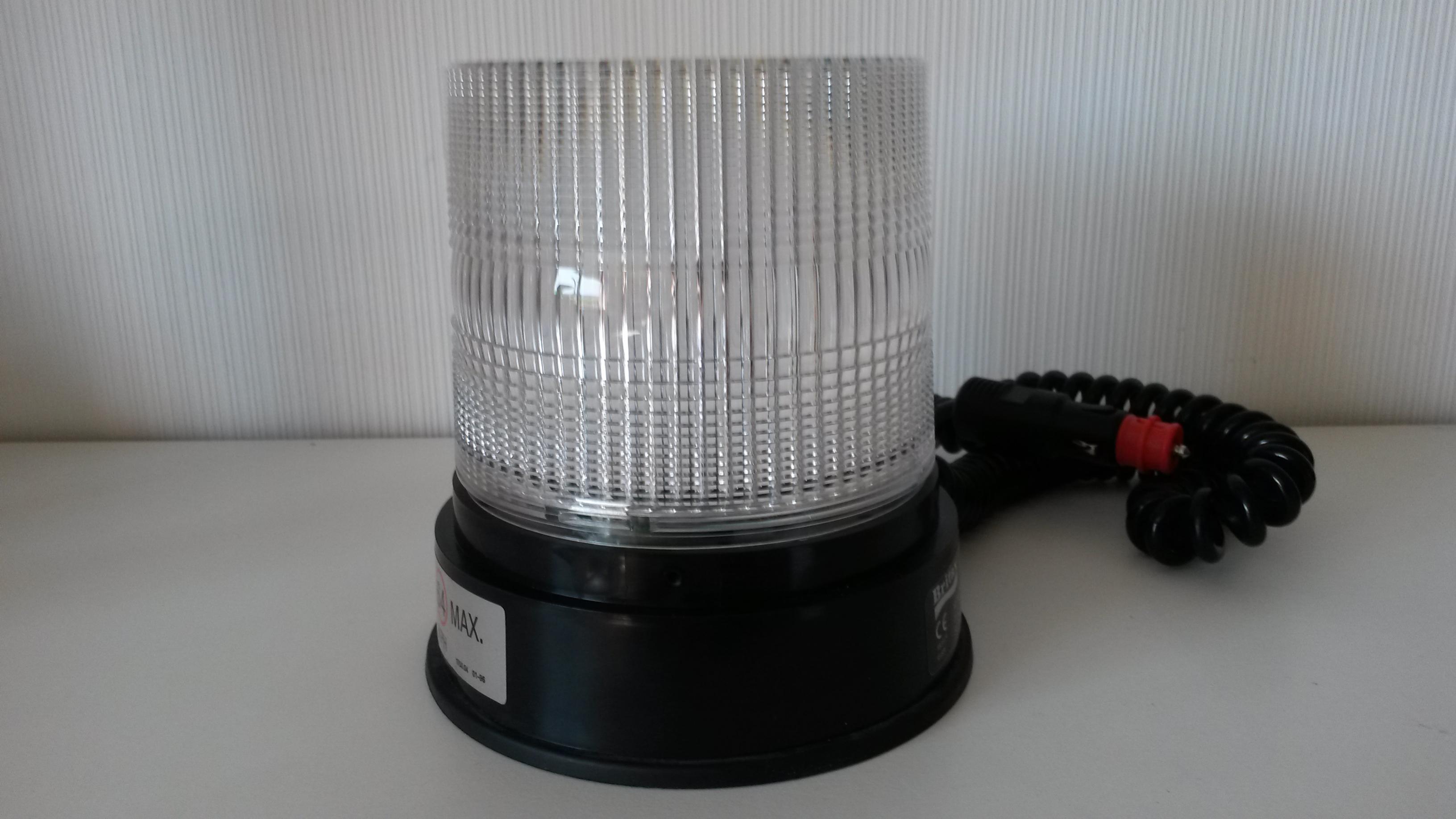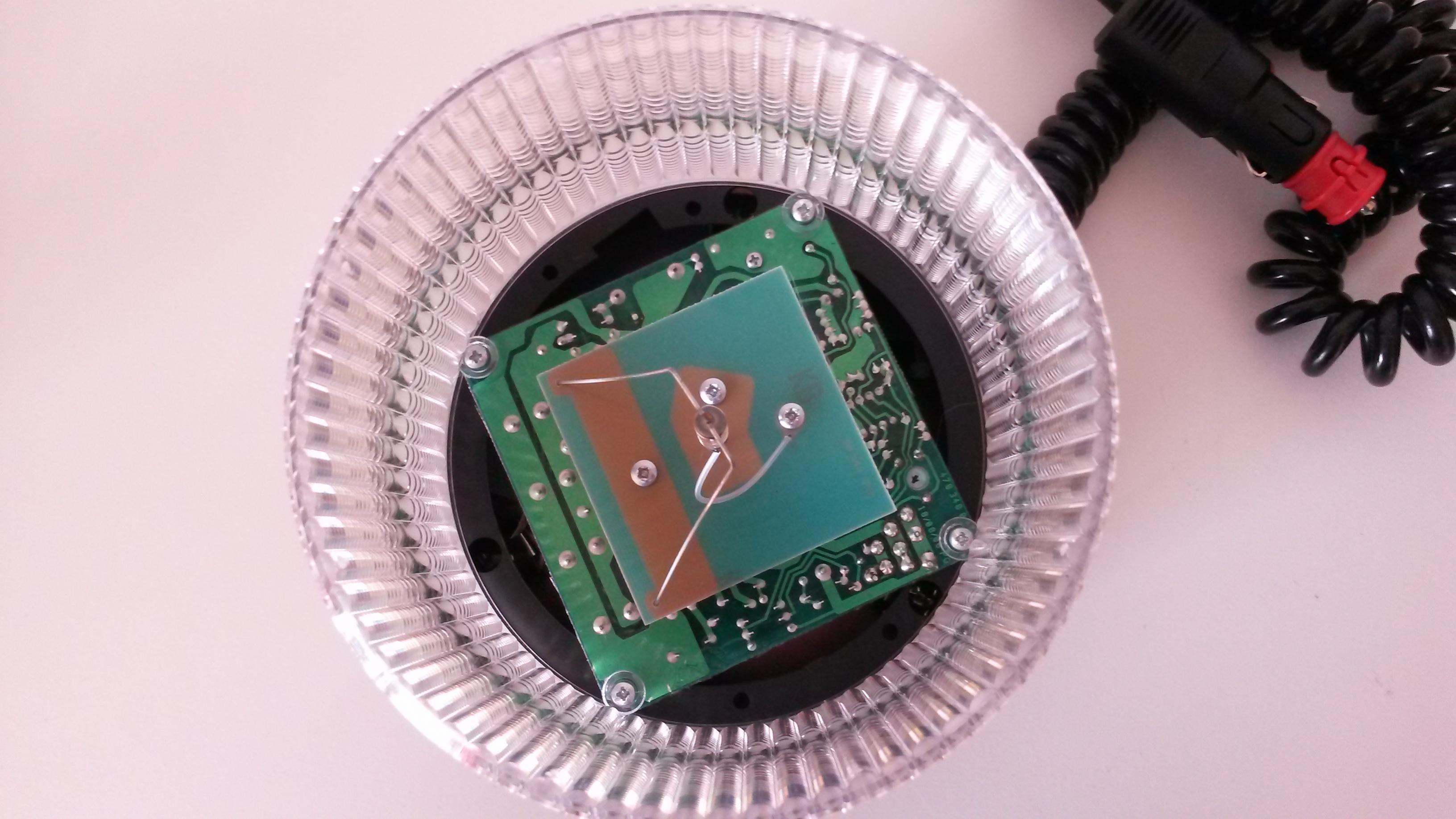 Eine Britax 274 Series in gelb-orange. Die Leuchte wurde von einem Fuhrunternehmer angeschafft, um sein Fahrzeug auf einer Autobahnbaustelle mit Gelblicht kennzeichnen zu können. Da der originale Britax-Stecker beschädigt war, musste ich ihn durch einen universalen DIN- / Kfz-Stecker ersetzen. Die Leuchte ist mulitvoltagefähig und arbeitet in einem Spannungsbereich von 10,8 bis 30 Volt "ohne die Notwendigkeit von Einstellungen" (O-Ton Bedienungsanleitung). Auf dem Gehäuse sind die Typenschilder und Warnhinweise teilweise schief aufgeklebt. Die Lichthaube ist klar, oben ist der Britax-Schriftzug vorhanden und es ist ein erster Blick auf die Stabblitzröhre möglich. Die Stabblitzröhre wirkt sehr klein, schafft es aber durch die gute Fresnell, die Lichthaube großflächig auszuleuchten. Die Fresnelllinse ist außen glatt und mit dem Gehäuse und der Platine verschraubt. Von oben ist die Verschraubung erkennbar. Vier Schrauben mit klaren, T-förmigen Unterlegscheiben halten die Fresnelllinse auf der Platine. Blick auf die demontierte Fresenlllinse und die Schrauben. Nach dem herausnehmen der Platine kann man auf die Innenseite des Magneten (mit Kunststoff überzogen). Blick auf die Unterseite der Platine. Die Aufkleber lassen vermuten, dass die Platine am 12.02.2010 gefertigt wurde. Die Doppelblitzleuchte erzeugt ein gut wahrnehmbares Signal und ist für den Fahrbetrieb bis 64 km/h zugelassen. Lt. der Montage- und Bediensungsanleitung wurde die 274 Series im Windkanal bei 193 km/h getestet, aus Sicherheitsgründen wurde sie jedoch nur ein Drittel der getesteten Geschwindigkeit freigegeben. |
