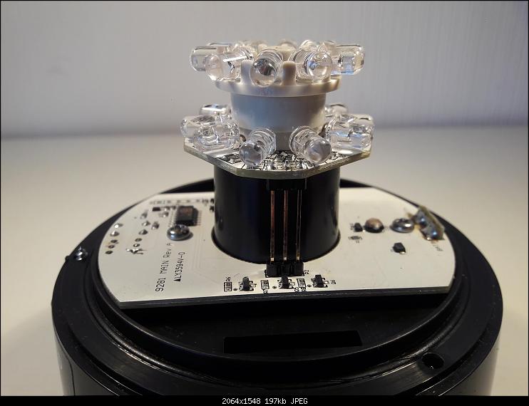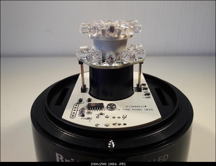 Die Höhe beträgt ca. 11,5 cm, der Durchmesser ca. 10,7 cm und das Gewicht (incl. Batterien) beträgt 600 Gramm. Befestigt wird die B364 LED entweder mittels eines im Boden des Gehäuses eingelassenen Ringmagneten, der mit einer Schutzfolie überzogen ist oder an der Öse auf der Oberseite der Lichthaube. Über einen außen liegenden Schalter wird die Leuchte ein- und ausgeschaltet. Nach dem entfernen des Gehäusebodens (mit Gewinde an des Gehäuse geschraubt) sind zwei D-Cell Batterien erkennbar, die die Stromquelle der Leuchte darstellen. Im Inneren erkennt man einen eckigen, hellen und einen runden, schwarzen Schalter. Der Runde wechselt zwischen einem Blinken und einem umlaufenden Blinkmuster (Drehspiegelsimulation). Mit dem eckigen Schalter lässt sich ein Dämmerungssensor aktivieren, der die Leuchte erst bei Unterschreiten einer gewissen Helligkeit in Betrieb setzt. Als Lichtquelle dienen 20, auf zwei Ebenen kreisförmig angeordnete LED. Die B364 LED ist natürlich keine vollwertige Rundumleuchte, sondern eher als Abricherung für Gefahrenstellen außerhalb des Straßenverkehrs gedacht und gemacht. Dennoch eine interessante Leuchte, die sicher auch auf Kettcars oder andern Kinderspielzeugen ein echter Hingucker ist. ![]() Video: |