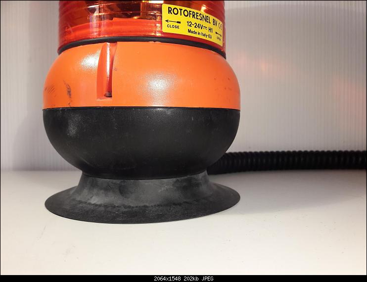 Es handelt sich dabei um eine Dual-Voltage-Rundumkennleuchte mit Drehspiegel-Technik. Die Stromversorgung über ein Spiralkabel mit typischen Sirena-Universalstecker. Befestigt wird die Rotofresnel über einen Magnet-Sauger mit innen liegendem Ringmagneten. Außen auf der Lichthaube ist ein gelber Aufkleber angebracht, auf dem verschiedene technische und praktische Angaben vermerkt sind. Die Lichthaube der Rotofresnel ist als Fresnelllinse ausgestaltet und auf das Gehäuse geschraubt. Ein schwarzer Ring (s.o.) dichtet die Lichthaube gegen das Gehäuse ab. Oben auf der Lichthaube befinden sich Angaben zum Leuchtmittel und die Zulassungsnummern. Das Innenleben der Rotofresnell ist typisch für eine Sirena-Kennleuchte. Ein Stufenspiegel (mit Sirena-Logo) dreht sich um eine feststehende H1-Glühlampe. Auf der Rückseite des Reflektors befindet sich das Typenschild der Rotofresnel. Hier fällt dem geneigten Betrachter auf, dass die Zulassungsnummer nicht identisch ist mit der Microrot und MiniAgri 2M - die sich bekanntlich eine Zulassungnummer teilen. Durch das Entfernen der drei von außen zugänglichen Schrauben lässt sich der orange Teil des Leuchtengehäuses von dem schwarzen trennen und gibt so die Sicht auf das Innenleben der Leuchte frei. Der Antrieb besteht aus einer Metallschnecke, die in ein Kunststoffzahnrad greift. Diesr Antriebsart ist typisch für Sirena-Leuchten. Mit der Rotofresnel weicht Sirena von dem Prinzip "ein Gehäuse - verschiedene Lichthauben" in der Größenordnung dieser Kennleuchten ab. Das stört jedoch nicht, sondern bringt optische Abwechslung in der Sirena-Familie. Video: |