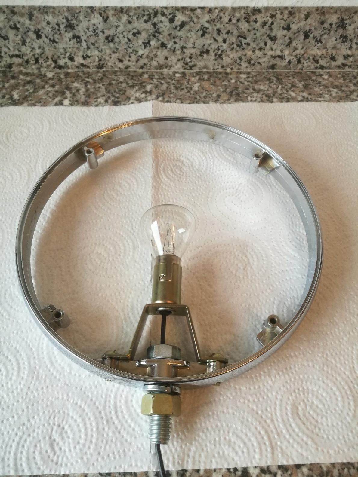 Alle Teile wurden gereinigt, aufgearbeitet und poliert. Zunächst der Ring: Dann das Innenleben mit einer 40 Watt Leuchte Rote Scheibe hinten: Rote Scheibe vorn: Und die Seitenansicht: Ich haben mich für ein Do Ray P97 Lollipop entschieden. Ich war erstaunt, wie schwierig es war, so eins zu bekommen. Die Leuchten haben einen Nachteil. Wenn man die Schraube, am Sockel, zu fest anzieht, bricht der Gussring. Auch bei den Lichtscheiben bricht sehr gern mal das Schraubenloch aus. Habe diverse Bestellungen gebraucht, bis ich ein vernünftiges zusammen hatte. Das Ergebnis kann sich jetzt aber sehen lassen |