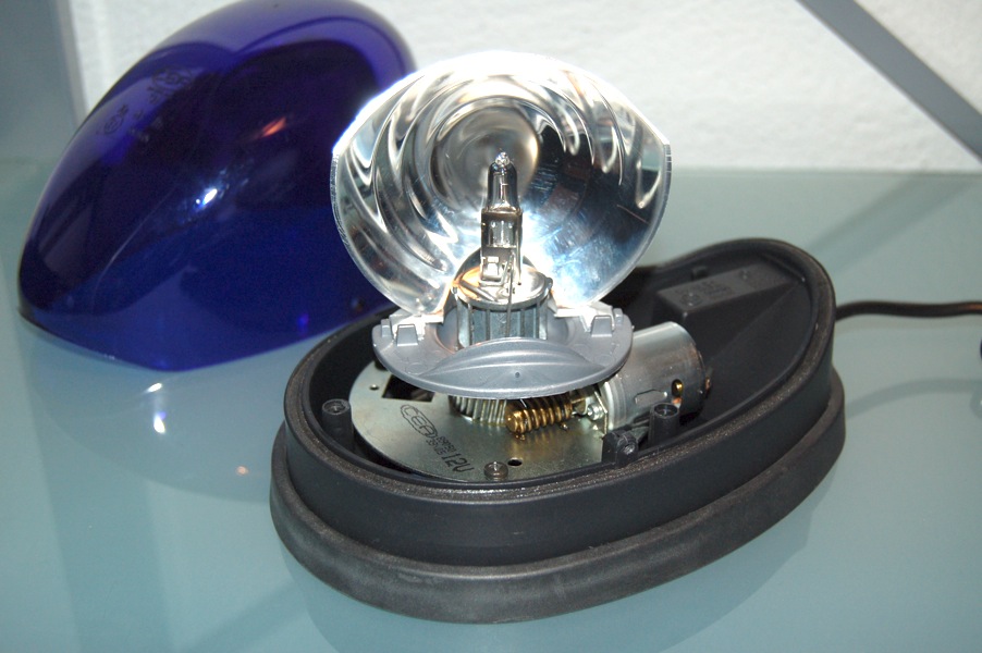 Modell Aries Flash Magnet 1V 10-30Volt, Einzel- oder Doppelblitzfolge einstellbar. Wendelblitzröhre, austauschbar. Montage mittels Magnetsauger. Eine eher unbekannte Leuchte von CEA Switzerland, formlich starke Ähnlichkeiten zur Hella KLX (7017). |