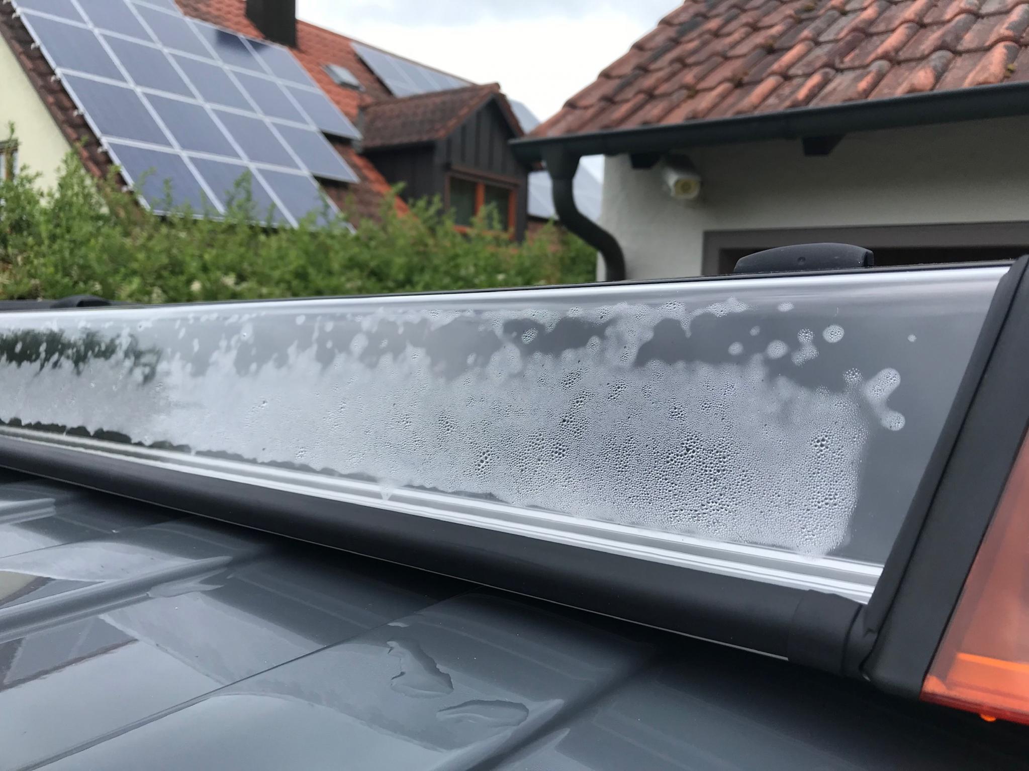 Das sind schon neue Zirkon Z2 mit den beiden Entlüftungselementen im Deckelprofil, die Balken trocken auch nach längerer Fahrt nicht aus.