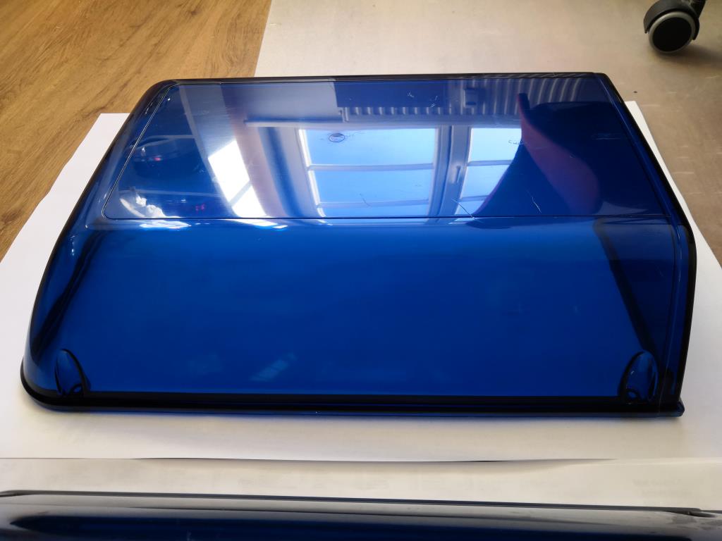 Die beiden blauen Hauben aus dem Bestand sind wirklich keine Schönheiten, aber ohne Risse und "Spannungsrisse".