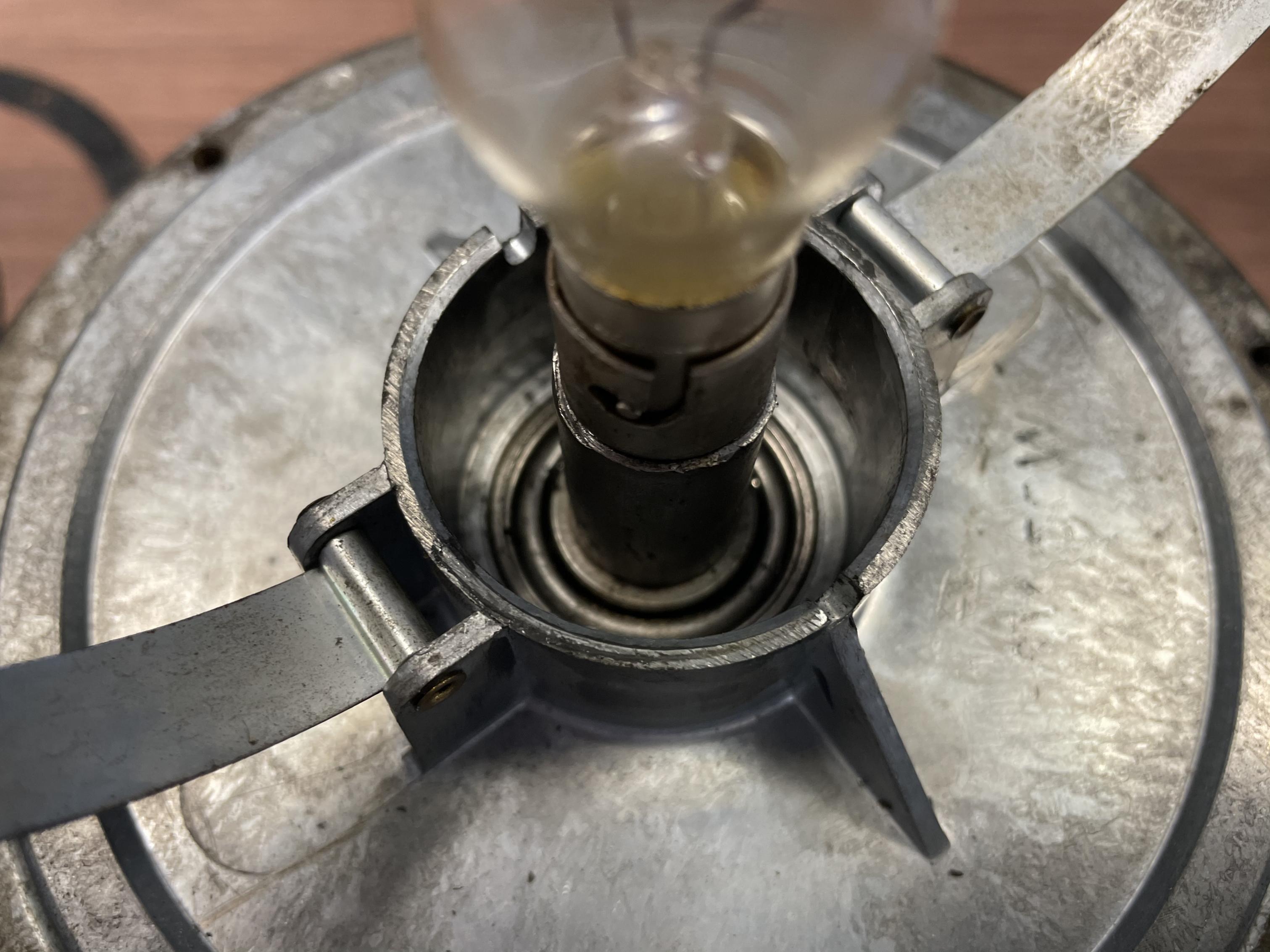 2. Den wackeligen Reflektor und Motor in der Blauen wieder fest gemacht, dabei erstaunliche Dinge entdeckt: scheint aus dem Schiffsbau zu kommen, die KL 1 Alles massiv, irrsinnige Kugellagerungen für die Welle, innenverzahnter Drehteller aus Guss Meine Güte, hier ist alles für die Ewigkeit gebaut.