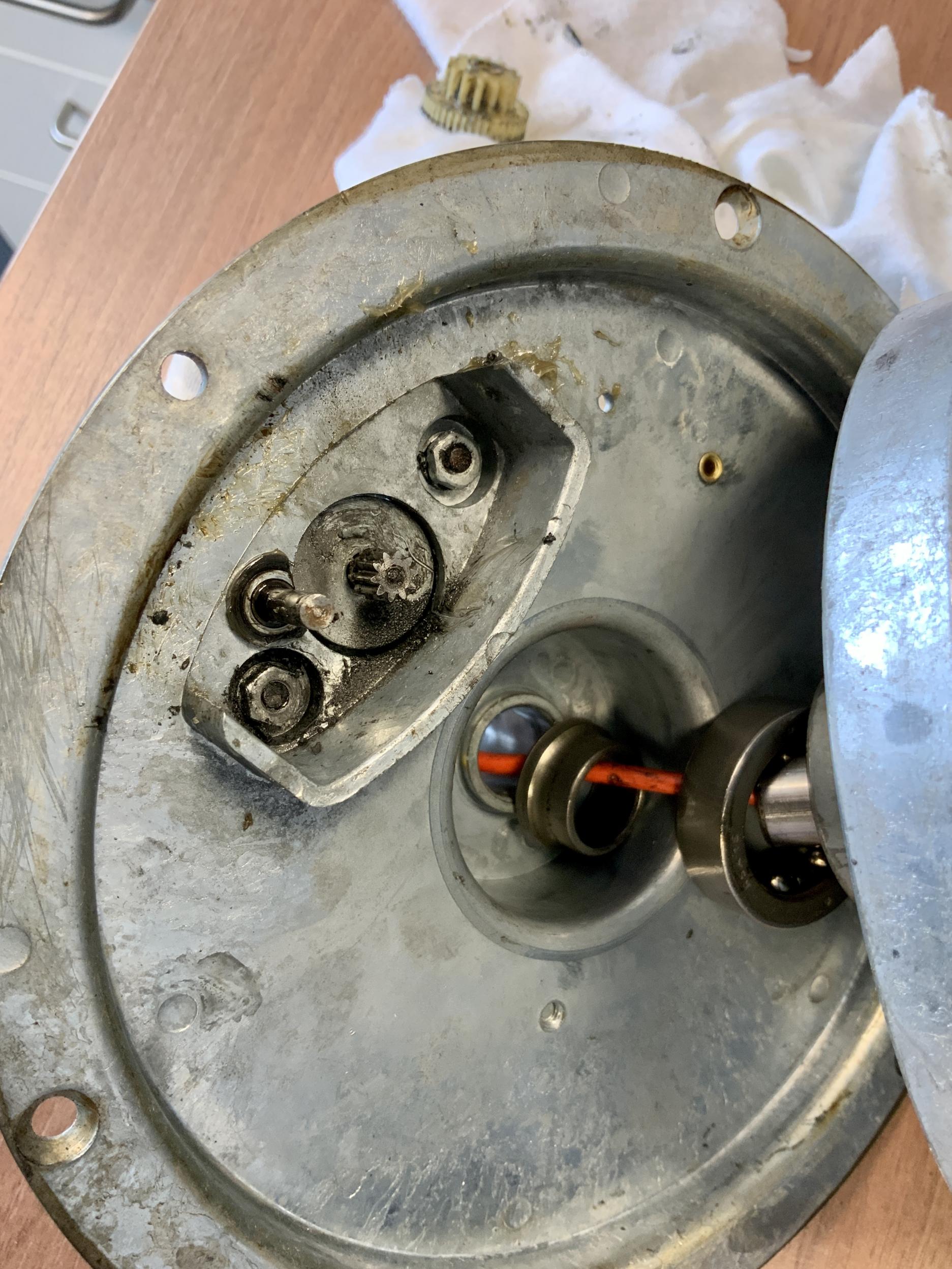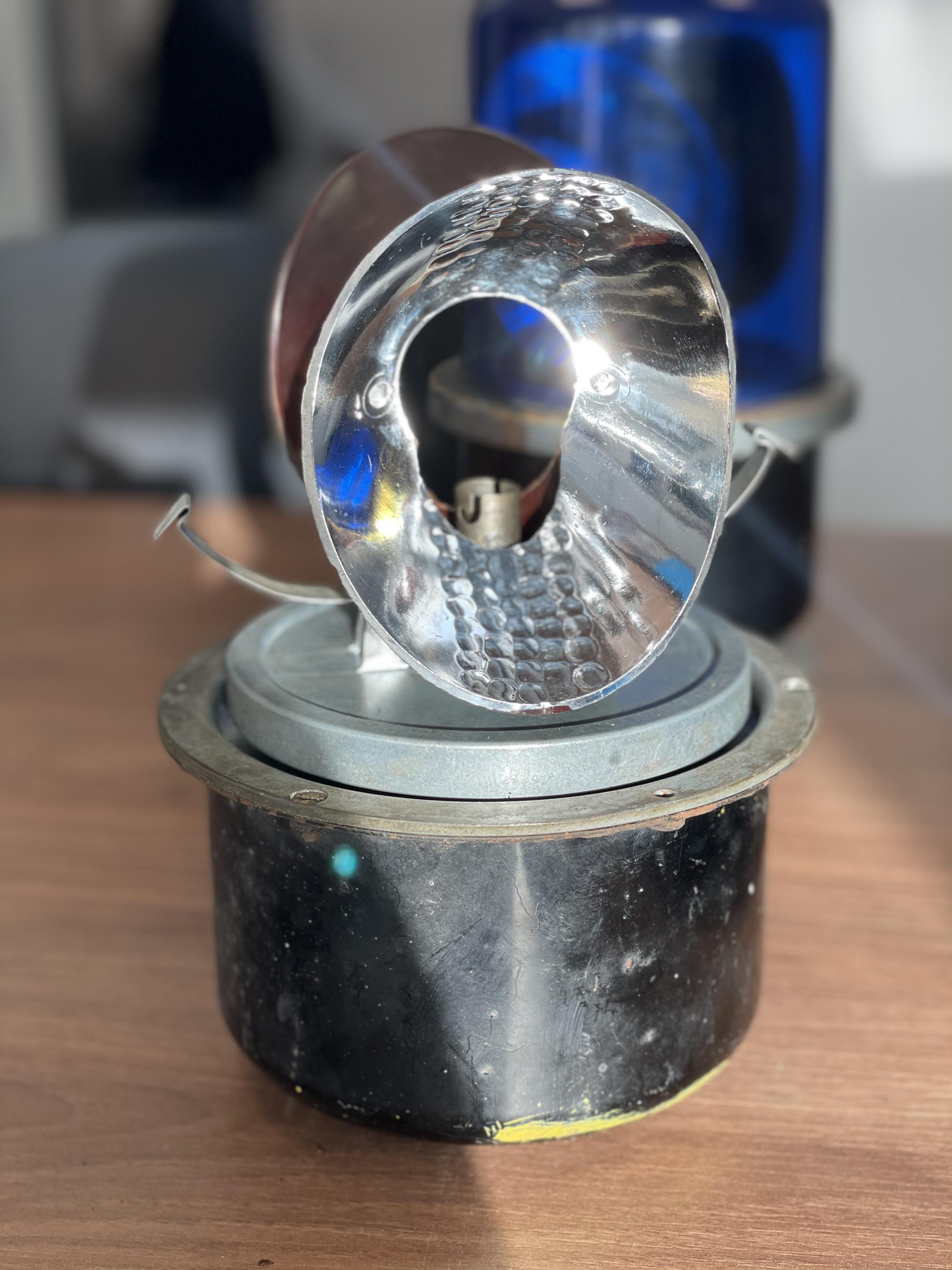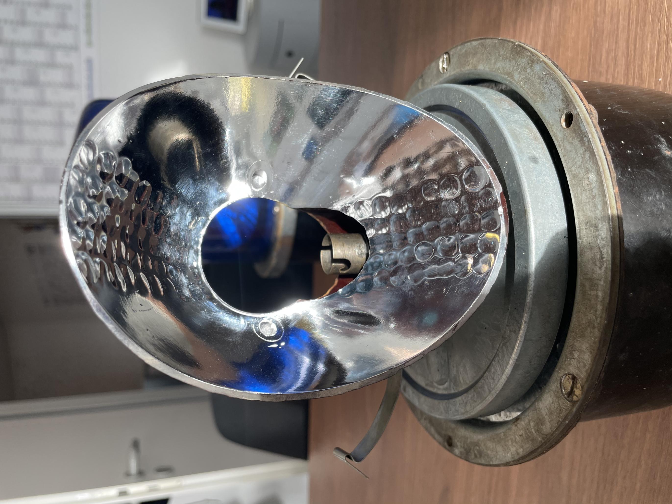 1. Hauben, Chromring und Sockel mal leicht (!) und ultravorsichtig poliert, die Hauben mit Fakopol, die Blechteile mit AluPolish P21S. Ich wollte die Patina ja in jedem Fall erhalten. Diese leichte Politur hat enorm viel aus den Teilen heraus geholt! 2. Den wackeligen Reflektor und Motor in der Blauen wieder fest gemacht, dabei erstaunliche Dinge entdeckt: scheint aus dem Schiffsbau zu kommen, die KL 1 Alles massiv, irrsinnige Kugellagerungen für die Welle, innenverzahnter Drehteller aus Guss Meine Güte, hier ist alles für die Ewigkeit gebaut.3. Der Gelben eine U45W eingesetzt. Hier einige Bilder, viel Spaß! |