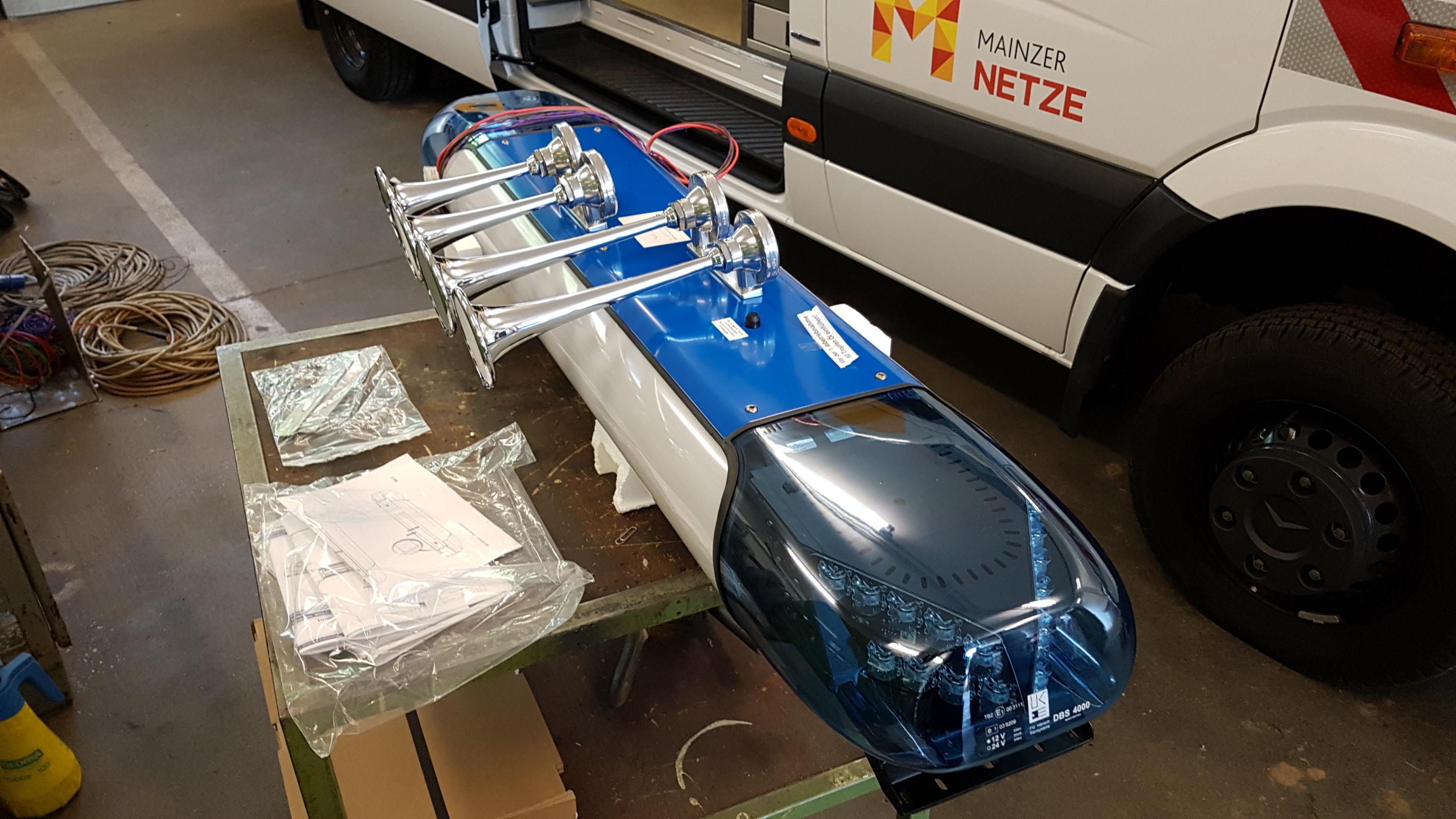 da die Kombination mit einer HBE 300 CAN447V2 gesteuert ist, unterstützt der DBS 4000 das MARTIN Horn von Haus aus. Sofern kein MARTIN dabei ist muss lediglich die drei Leitungen für den Kompressor, ein Relais (30A) und der Kompressor und die Hörner selbst in den Balken.