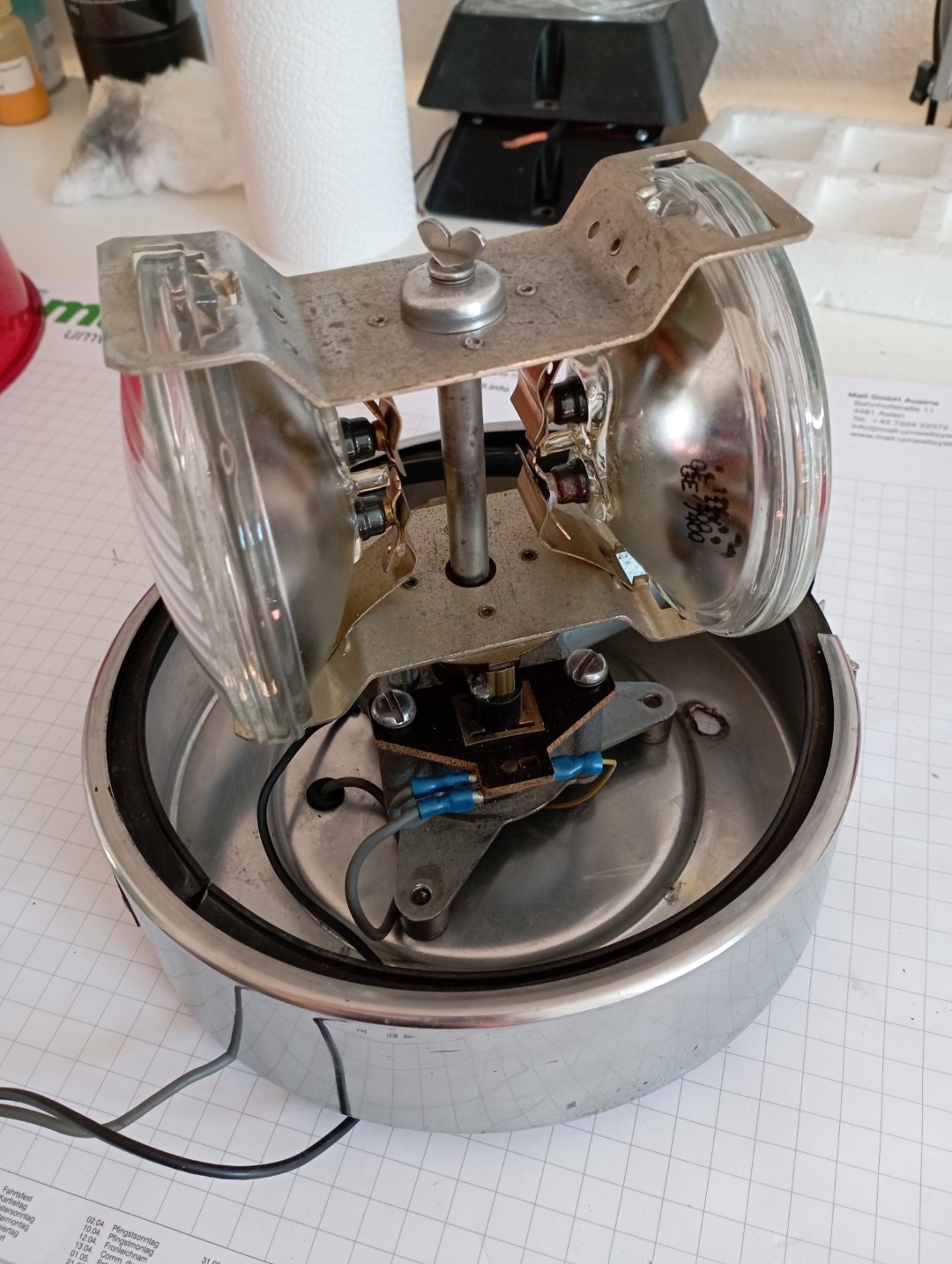 Aufbau quasi wie bei der Mod.14 und Motor-Getrieb-Einheit von Bosch ist auch in vielen Leuchten im Einsatz. Das ist eine robuste und langlebige Leuchte, die der Mod.14 ebenbürtig ist. |